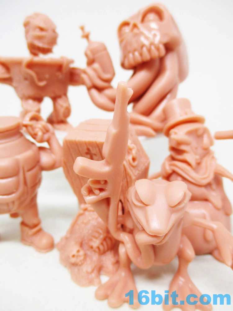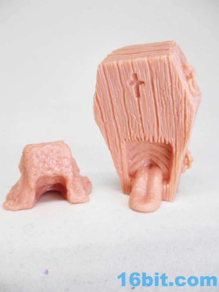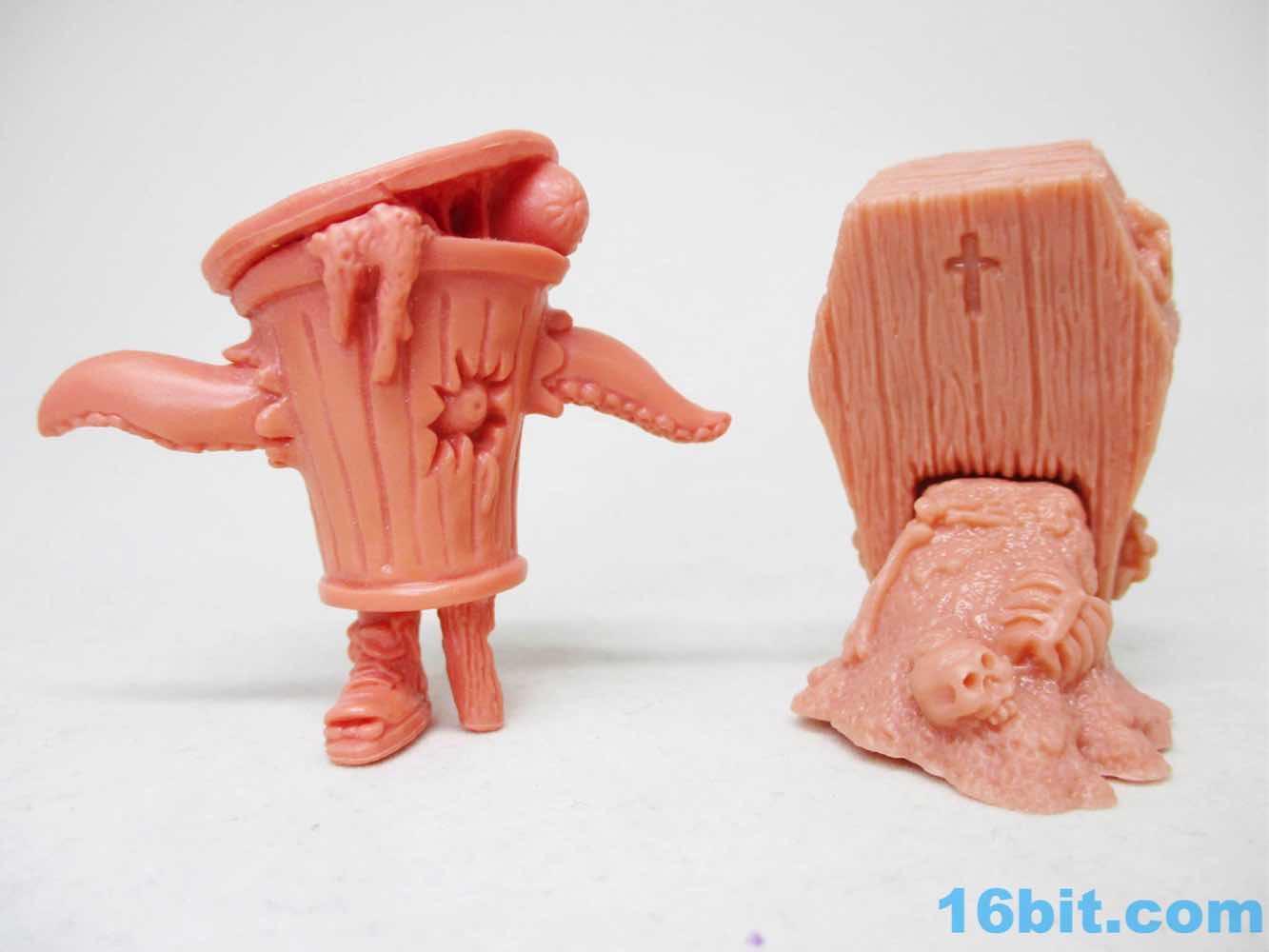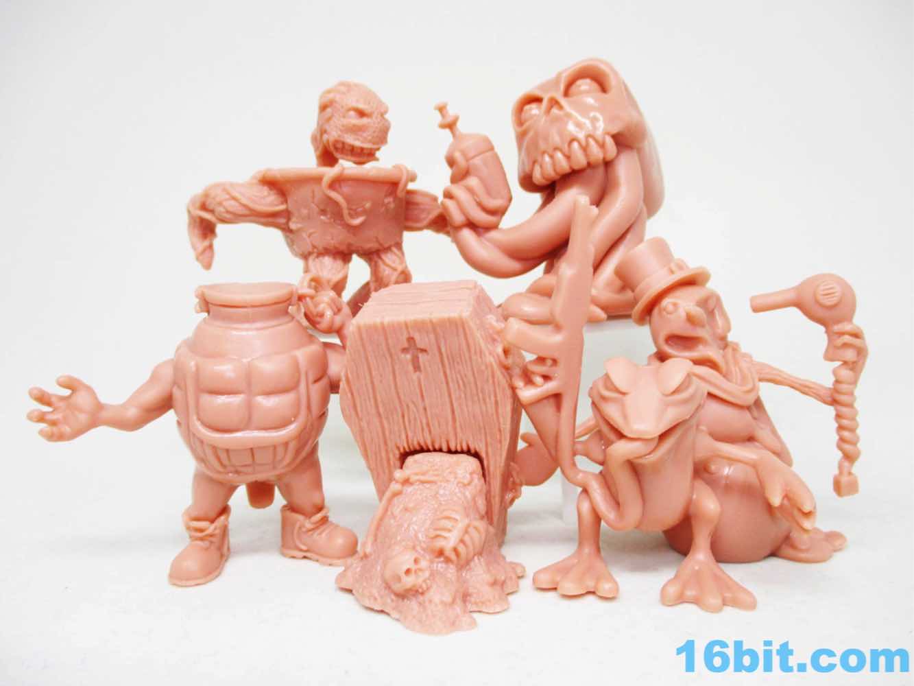 Unlike simpler sculpts for OMFG, MOTUSCLE, SUCKLE, and others that aspired to be a single-piece figure, most of these guys are two pieces. You can only get so much on a single mold - a lot of these have glued-on limbs or other elements Bryan Fulk sculpted all of these guys, but some of the designs have appeared elsewhere before - Nik Sardos' Coughin' Coffin was a previous entry in the OMFG voting rounds.