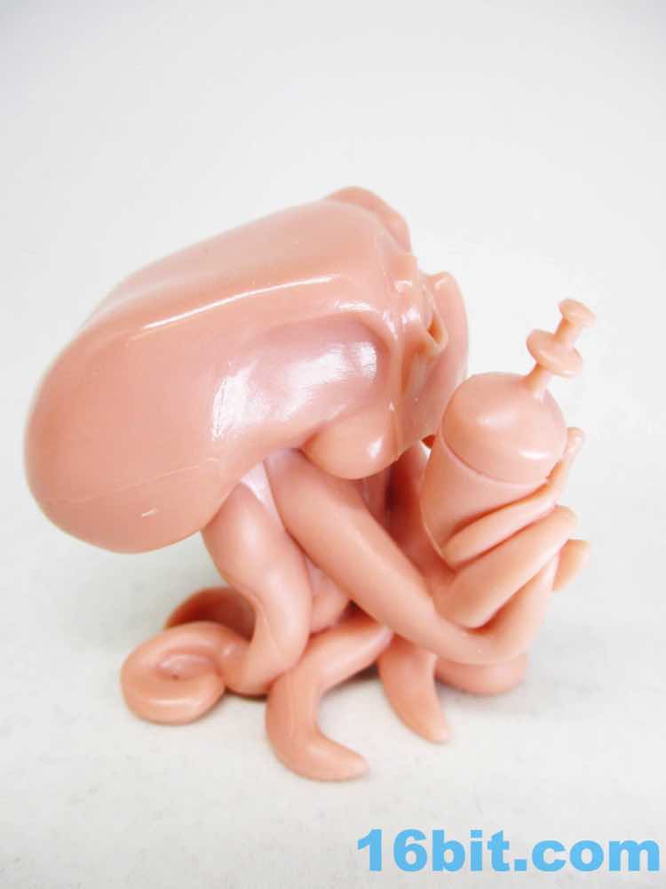Captain Sporloff was a sketch that the artist made in high school, and it's basically an octopus with a skull head and a ray gun. That skull is a separate element and it's really slick - I mean that. Unlike the others with their matte textures, she is a glossy-headed creature. Her eyes are like a goat's, the skull is inhuman, and of course it lacks a jaw because it has massive tentacles spewing forth from the gaping hole. I count eight in all - two of which are gripping that retro blaster. The others are wrapped in a column serving as a base, making this a stable figure with surprisingly good tentacle detail. The tentacles are all distinct arms when you pick up the figure and examine the bottom, rather than unfinished, flat-footed figures. This one is huge, hefty, and a real gem.