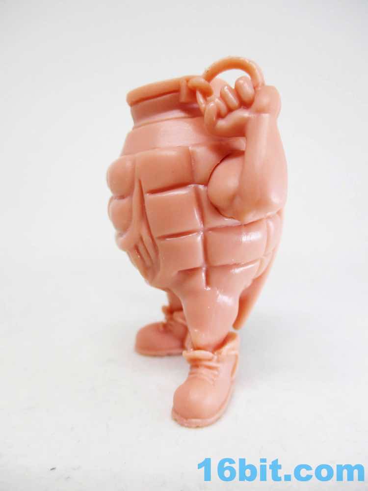 Similarly ghoulish is Grinade, a grenade with a smile out of Sam Keith's The Maxx and decade-appropriate boots. Super buff arms seem like a nod to the M.U.S.C.L.E. inspiration, and they're glued in as a separate piece connected to the handle. the pineapple-esque weapon is the kind of thing 1980s weapons-book-obsessed kids would die for, an appropriate mascot for a decade where military equipment literacy seemed oddly ubiquitous in gradeschoolers. It's not for kids... but you could see kids losing their minds over this.