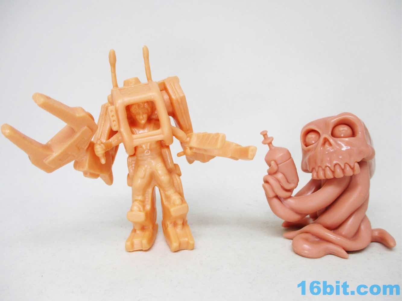 The mouth weapon duo of Antaeus (Sam De Jesus) and Captain Sporloff (Commander Sporloff in the campaign, by Trysta) serve as the smallest and largest figures in the pack. Antaeus is comparatively tiny, but is more imposing than the old Mattel wrestlers. Slightly wider than many, the short figure is technically taller with that gun tongue towering over numerous other collectible mono-color figures. His right arm is a separate piece, molded to the gun while the left arm is just a separate element glued in. The figure seems appropriately retro with limited detail like a scarred eye and webbed feet, but no scales or slick finish. It's just a little frog thing that's going to shoot you with its tongue.