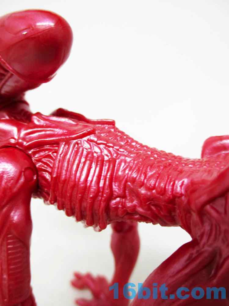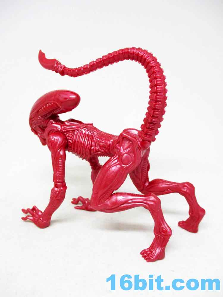 Lanard's "dogburster" or Xenomorph Runner is the selling point of this set. He's big - he might fit in with your old Kenner figures from the 1990s, and he's a weird gem of a figure. The bright red - almost pink - figure is metallic with swirls in it, which is a) gorgeous and b) the kind of thing that scares me for the long run. Swirly plastic has been known to have issues over time, and sometimes you hear they fixed it and sometimes you hear new toys crumble into dust. With 14 joints, this is a clever design - the neck, tail, and fists are all ball joints with the full range of motion. The elbows and shoulders bend-and-swivel, with the hips merely only swiveling. The range of movement is really good here, and the neck can look up and down which allows you to really make the most out of all those leg joints. You can pose this guy all kinds of ways, as long as the way is on all fours.