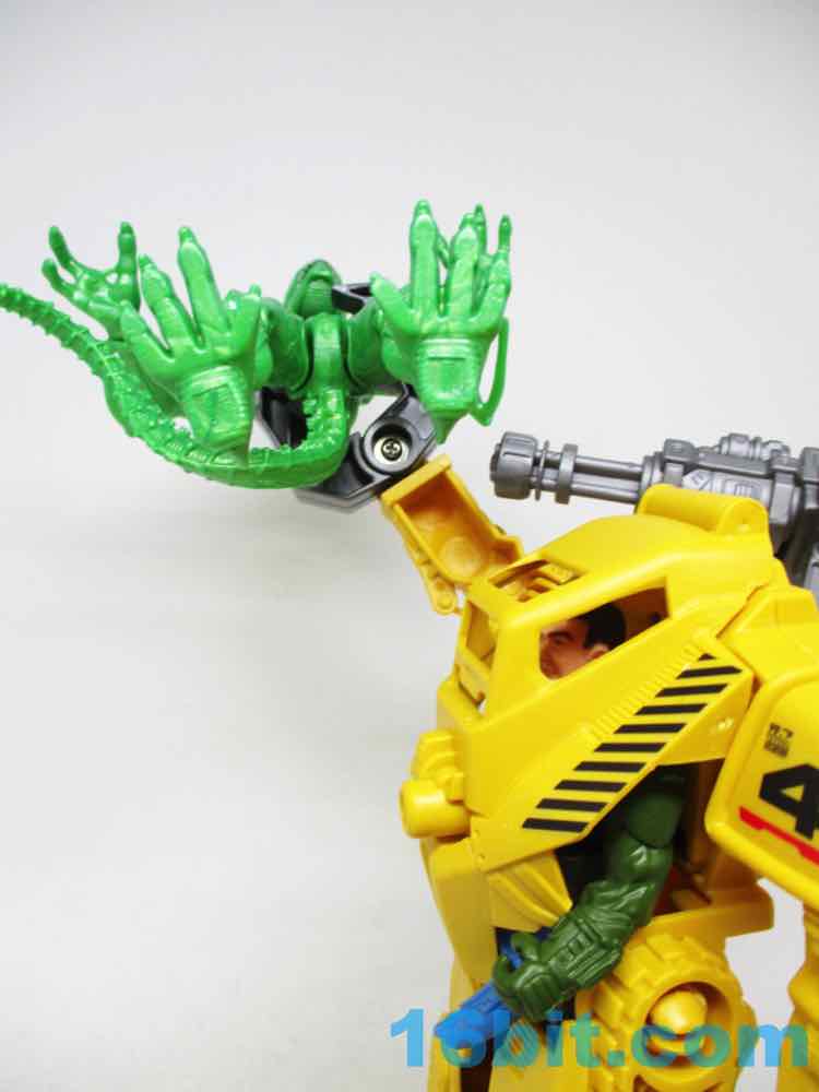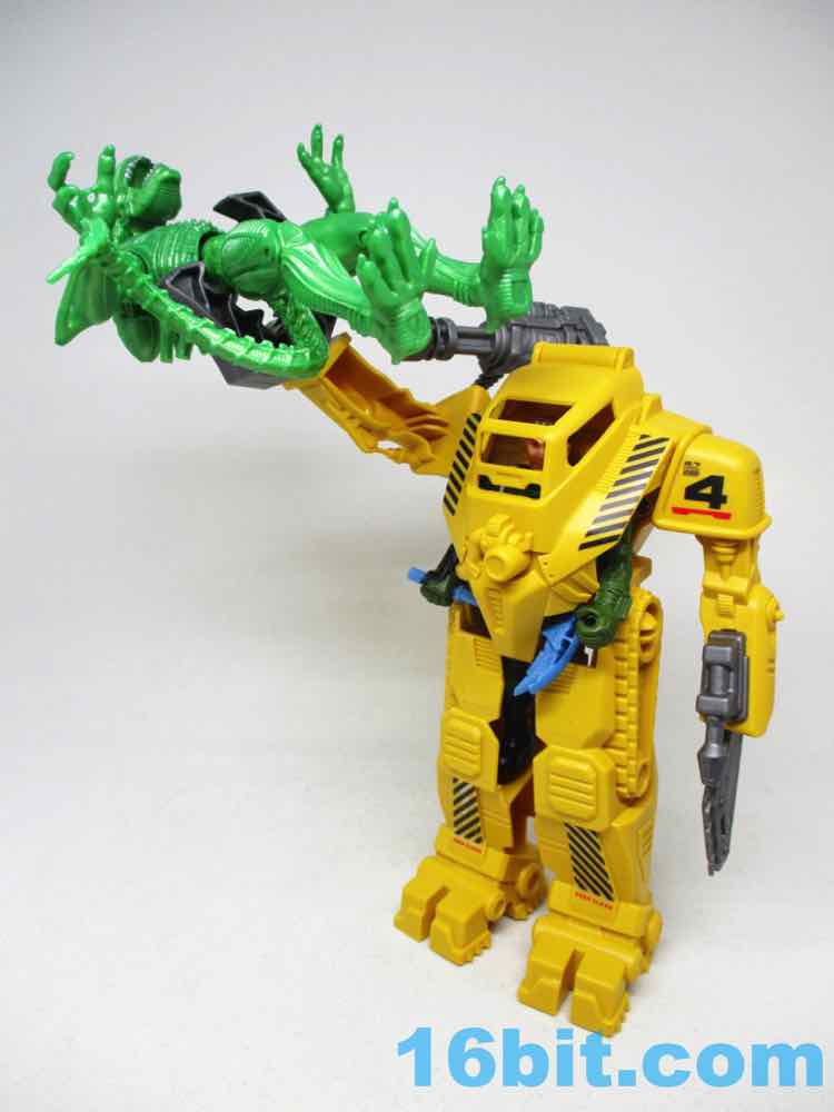 So how is that exo-suit? A big robot suit is a go-to toy in so many toy lines, it's no surprise Lanard built their own - Hasbro did a few for G.I. Joe over the years, too. Casting an existing mech in yellow seems like a cop-out, but it looks good. The caution marks and other labels enhance the look, as do upgrades like a claw hand, a giant gun, and a chainsaw hand. These are the kind of things that make it less of a mechanical forklift suit and more of a futuristic battlefield weapon that's more at home with the Colonial Marines.