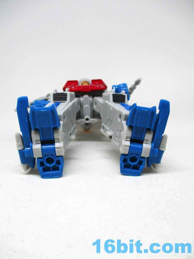 The design is incredibly similar to the Classics Seeker mold, except it's taller and dropped the rocket-firing null-ray cannons. The jet nose cone backpack has returned, the wings still hang off the ankles, and now the bigger wings have joints in them for better posing purposes. He has no problems holding weapons in his fists, or aiming his null-ray cannons. The only thing I find missing in the robot mode is a waist joint, but everything else moves well enough that it hasn't been a problem for me as of yet. The kibble mostly works, and the only knock I can give it is how it seems they borrowed an idea from 14 years ago in terms of the design. I'd have loved to see something new, but I can't deny the sculpting or deco turned out particularly well.