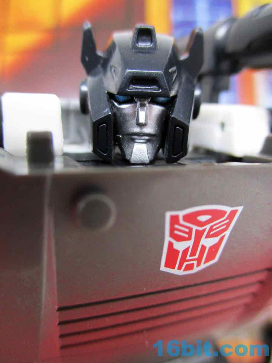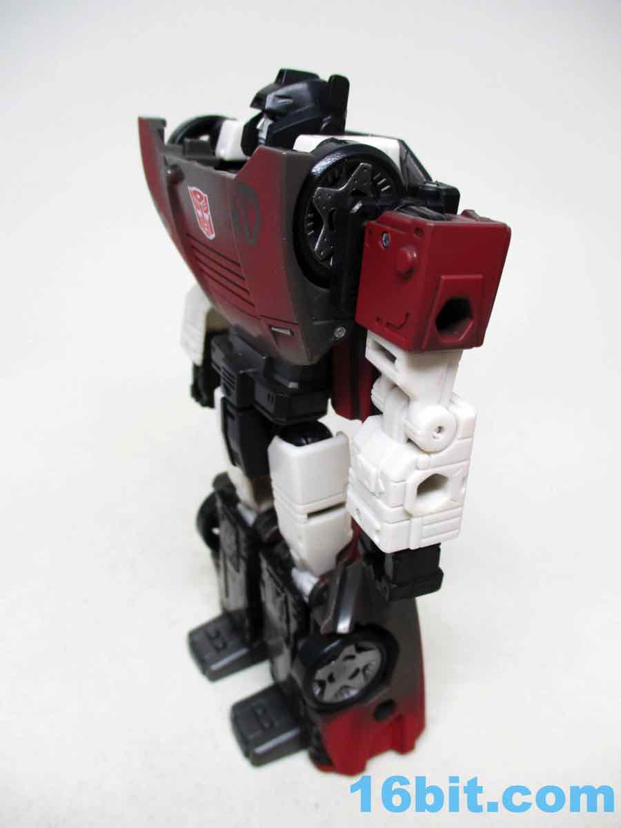 Turning it into a car is a snap - the legs open up to shove the feet in there, the arms tuck under the car, and it all just plain works. Assuming you have the first release, and the G2 version, and Red Alert, you've probably got this one figured out by now.