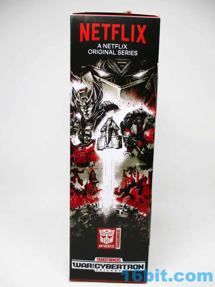 This is part of an assortment of toys to promote the Netflix show at Walmart, with new white, black, and red packaging and a build-a-playset. The packaging doesn't call out the other toys in the program, or the playset, which strikes me as an ongoing problem with Transformers and Hasbro toys in general. When we were kids, you'd get a catalog or something to show you the next toy you'd want - today there's nothing on or inside the packaging to promote the other toys, and now they don't even number them on this series. Other toys in this exclusive wave include Chromia (damage deco), Hound (damage deco), Decepticon Mirage (totally new deco), Scrapface (new character), Hotlink (new redeco of Starscream), Megatron (fancy paint), and Ultra Magnus (it's a secret.)