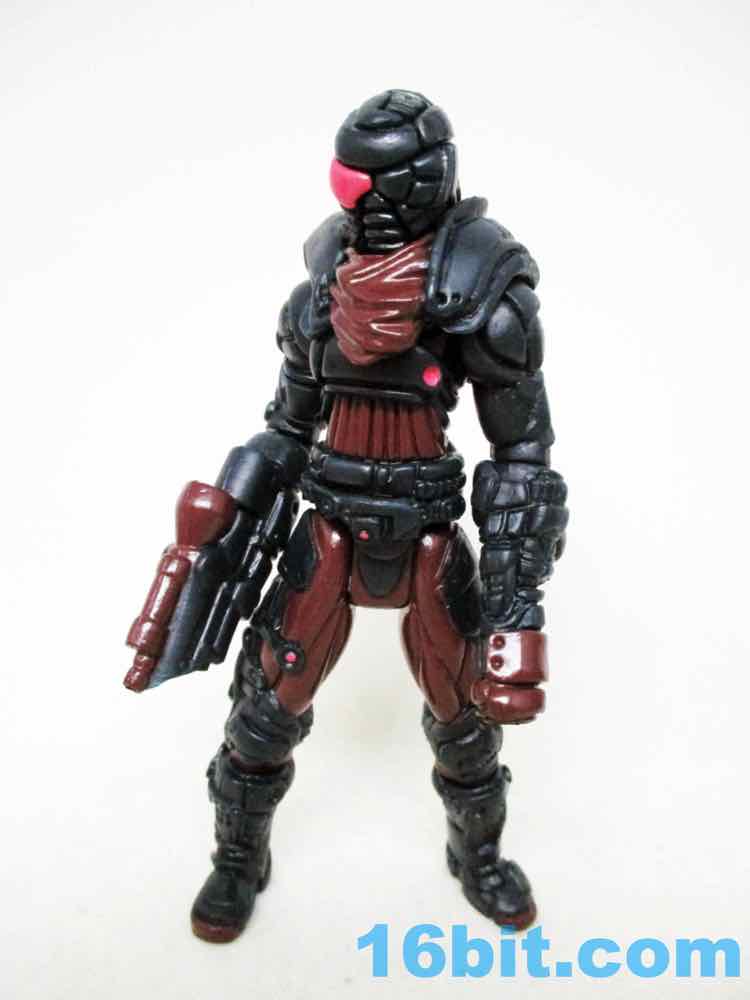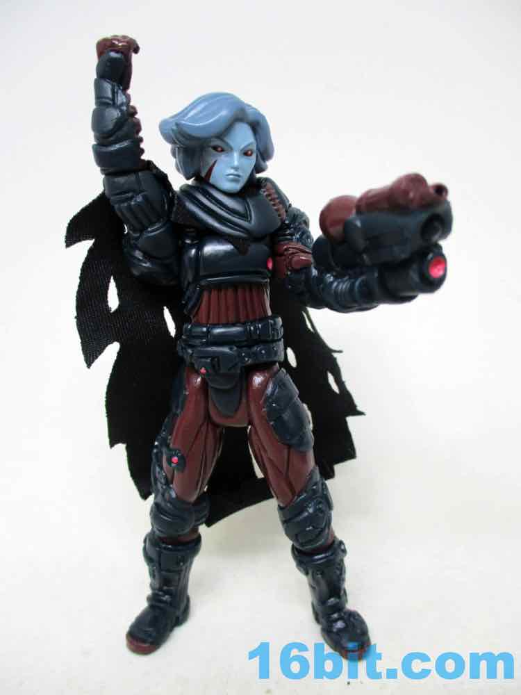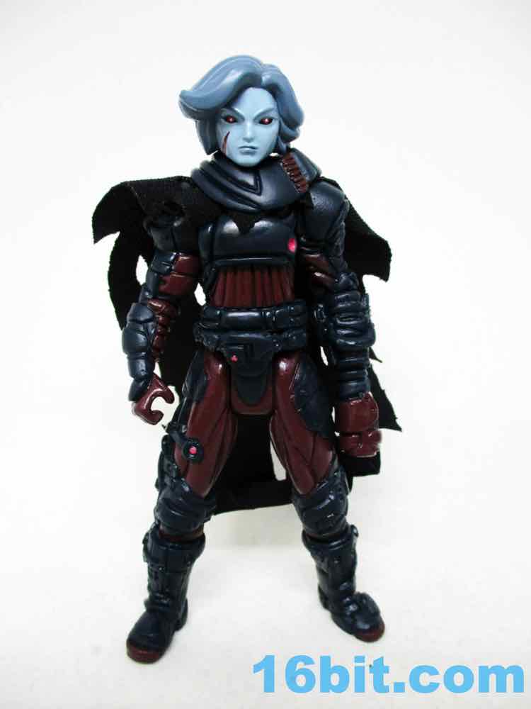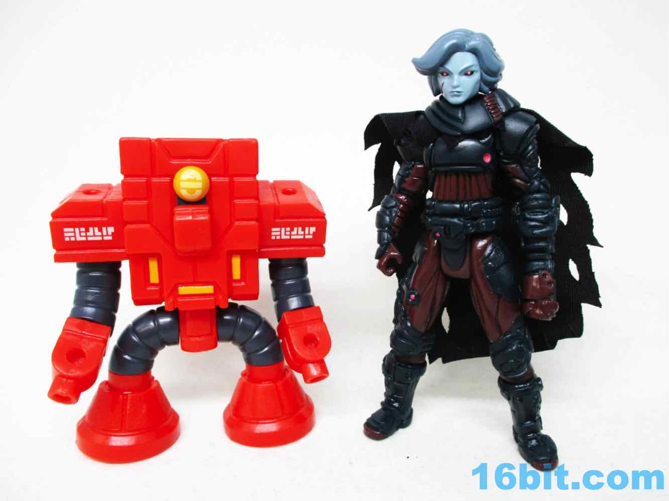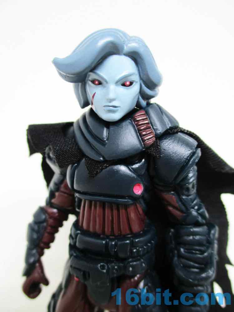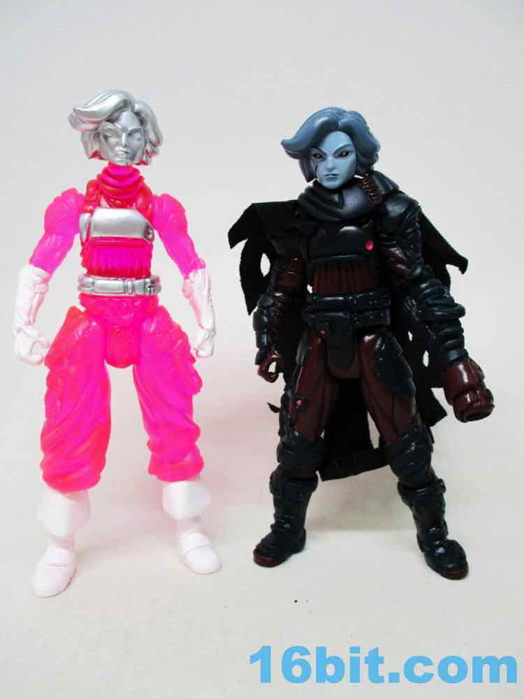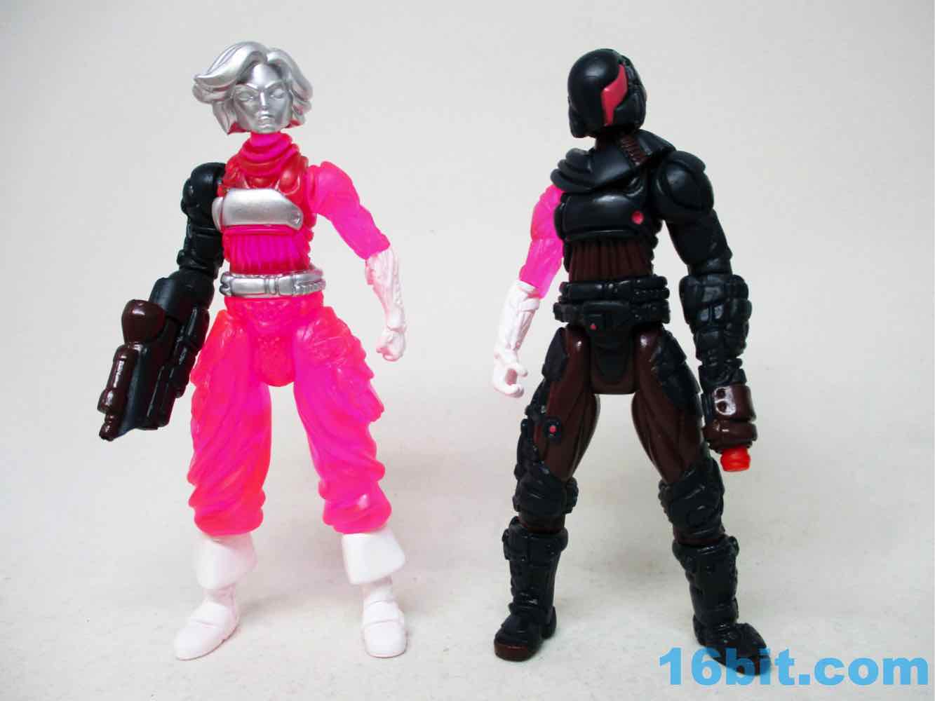 In this particular packet, you can mix and match between 2 collars, 4 heads, and 2 sets of arms and 2 sets of hands. This level of customization is almost maddening, because the default builds are great. The black figure has a dark almost chocolate brown set of paint applications, plus a few assorted pink elements. She's got a light on her leg, belt, chest, and eyes. There's a big dark scar on her face, which just happens to almost match her hair.