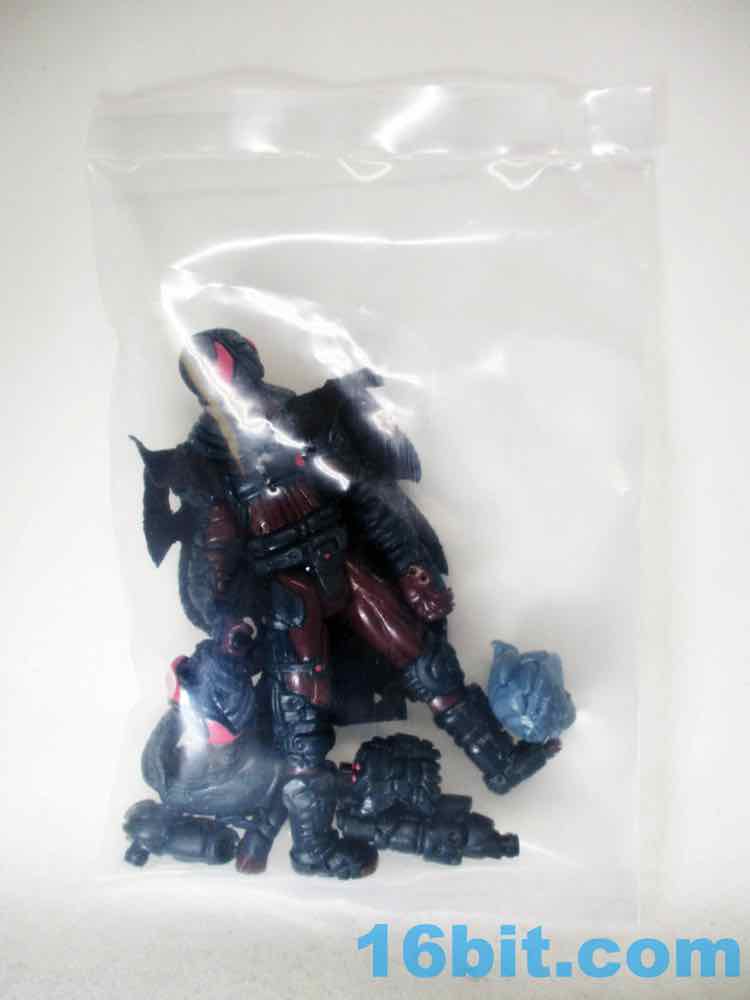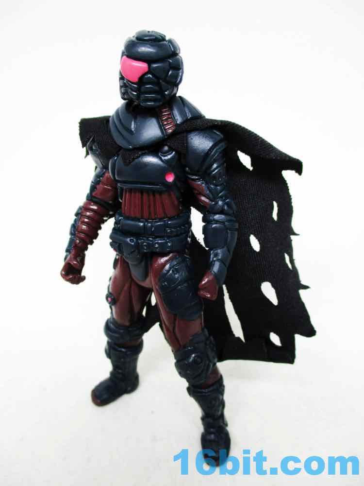 Colored like a distant cousin of Glyaxian Xodiac, this Queen Kirallius is a marvel - everything works. Big armor with a tattered cape as well as a blue head, with blue hair, and red eyes will make this figure stand out among the pack. Sadly she doesn't have any handheld weapons like swords or blasters, but she does have two gun arms - and you can put a switchpin in one of them to look like it's shooting, or hot, or powering up. She can also borrow weapons from your thousands of other action figures. (If you're reading this site, you probably have a lot of other action figures.) Articulation is more or less standard Toy Pizza fare, with about 10 meaningful points of articulation. As with all Glyos figures, she can pop apart at each joint and you can swap with other figures.