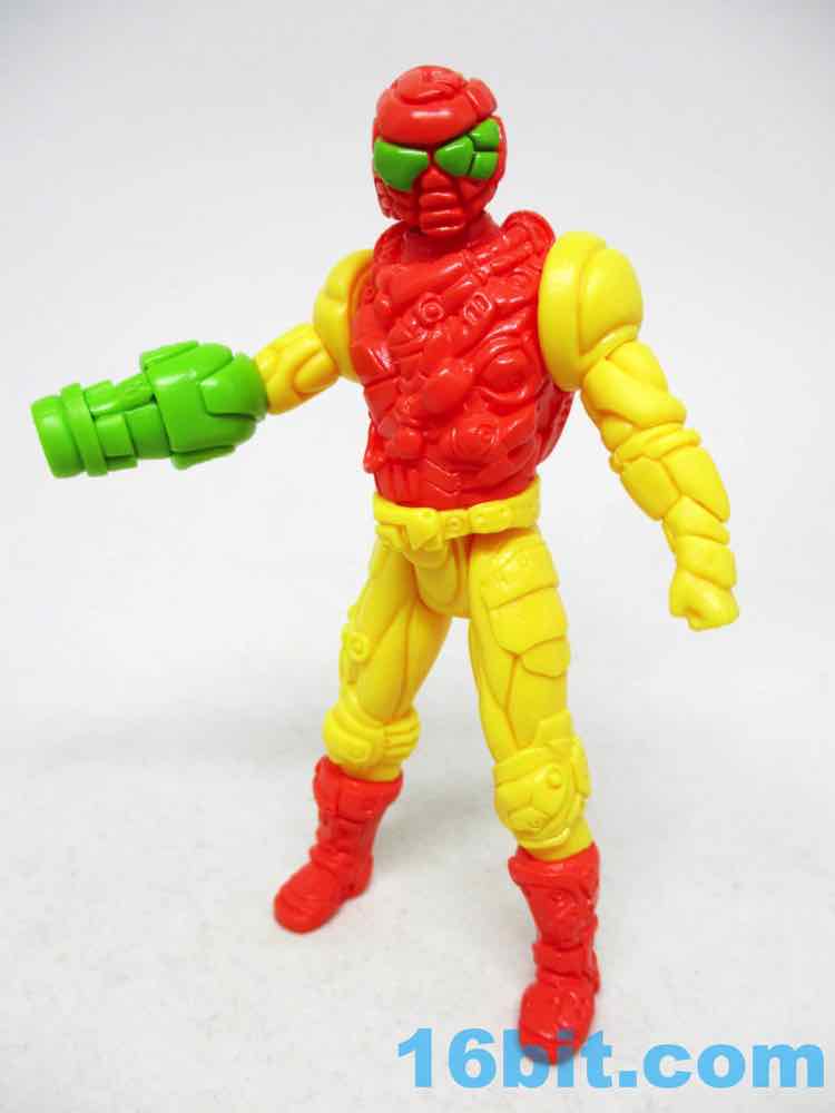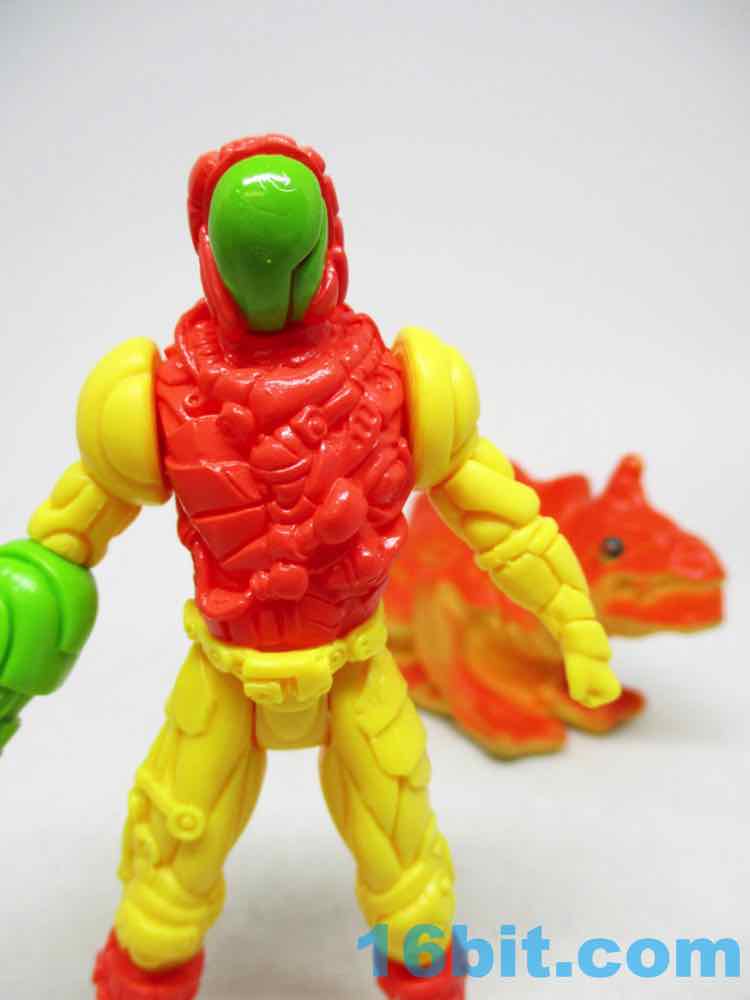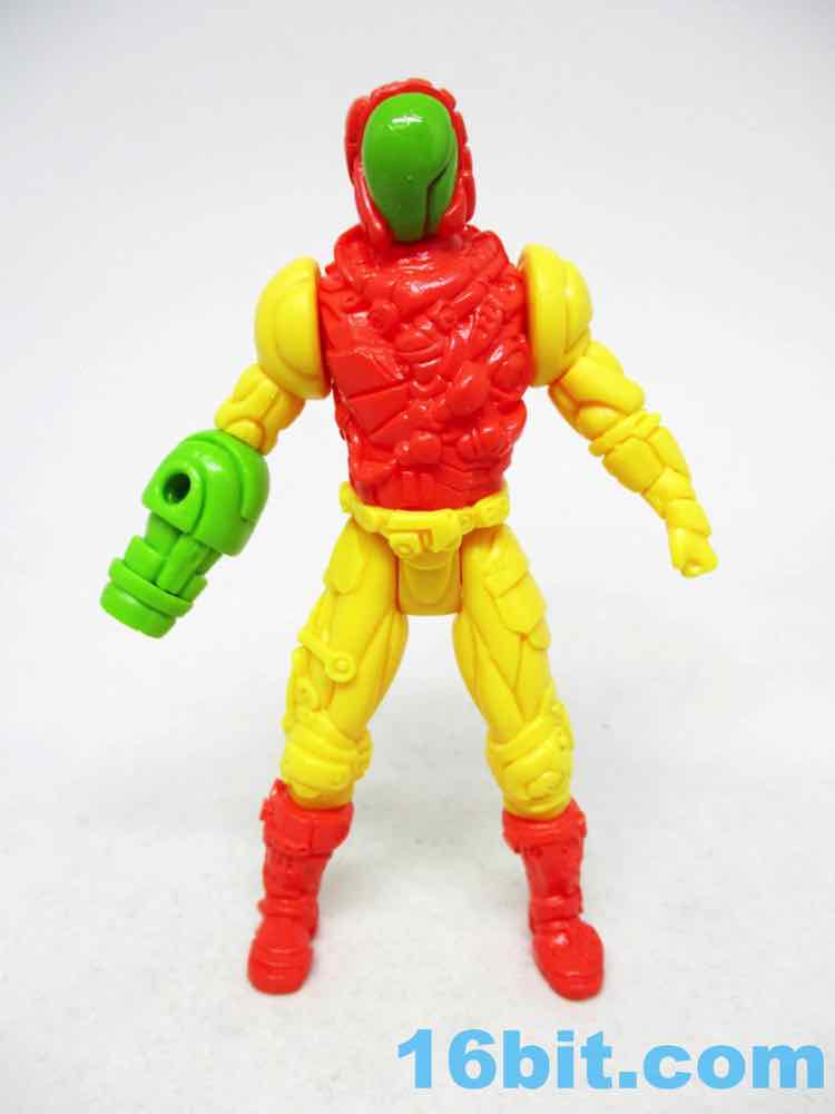For years I thought we'd see Pheyden or even one (or more) of the Outer Space Men in Samus Aran's armor colors or even her Zero Suit duds, but it was Toy Pizza that grabbed the trophy for this mass-produced figure. The 3 3/4-inch scale figure's flat coloring is a clear tribute to the 8-bit Metroid game, as well as 1980s action figures. It's simple and flat, while also looking like something Fisher-Price might have sold you. As an added visual bonus it reminds me of a lot of the early Metroid fan art from Nintendo's earlier magazines, where most of the designs had little in common - save for color and a basic, rough form - to what would eventually morph into the official character model.