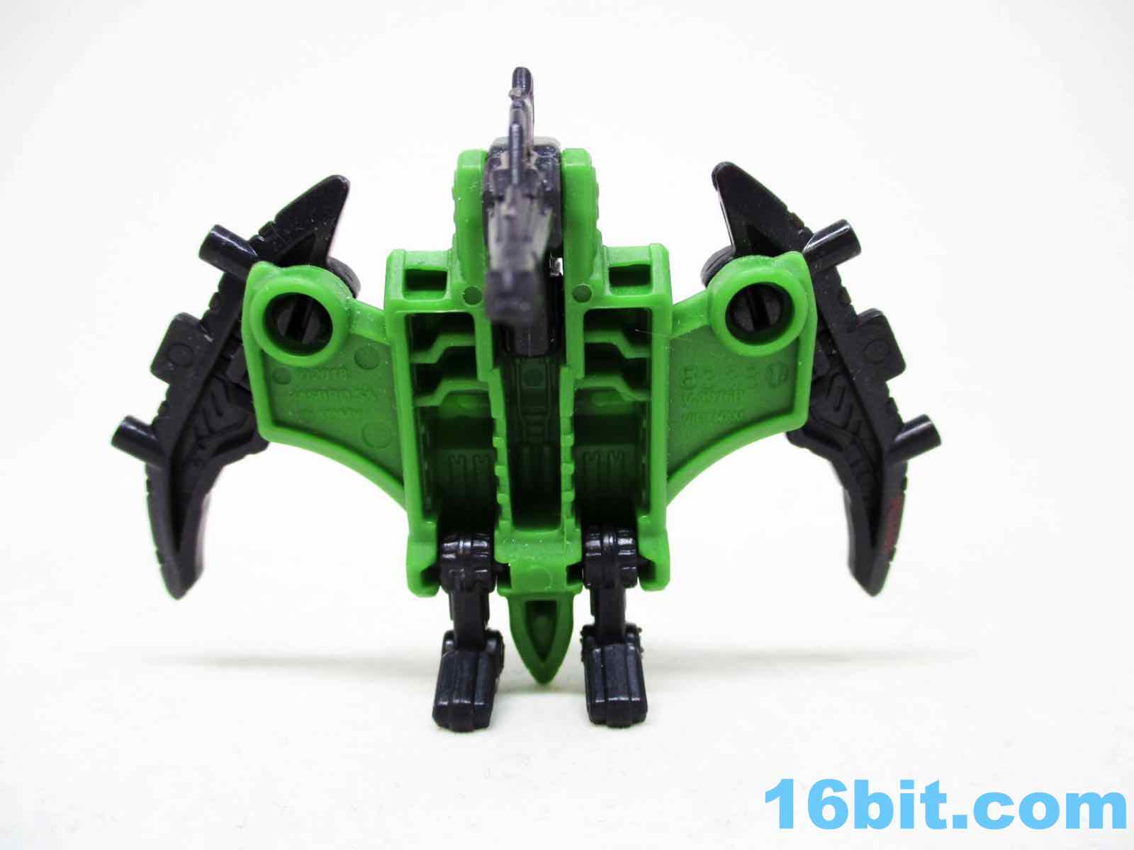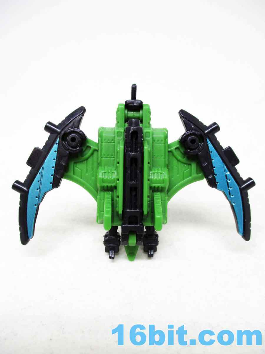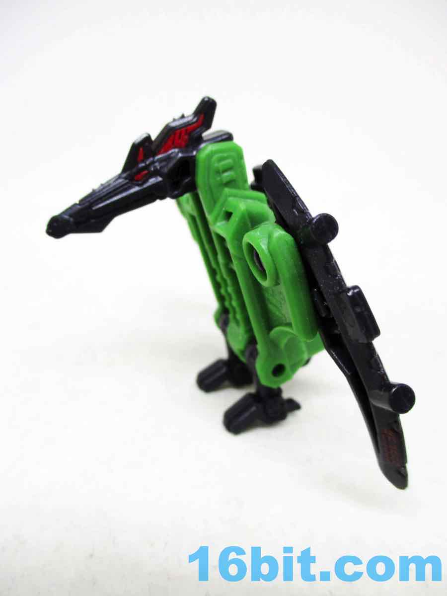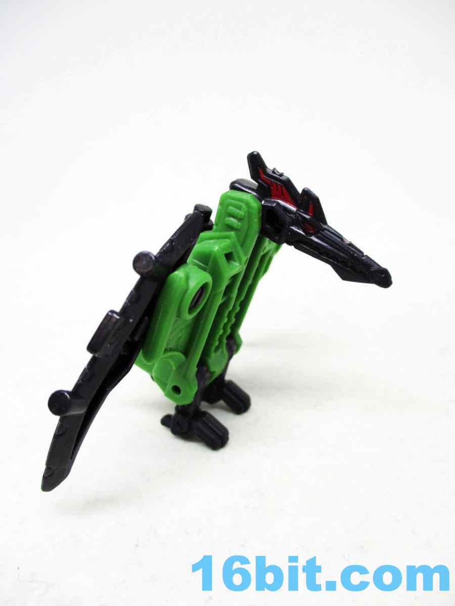 By default you get a pterosaur robot of sorts, which makes absolutely no sense in the context of the story but who cares? It's cool. The green-bodied black-limbed creature stands on his tiny two legs with an articulated neck, wings, and ankles - and if you want to pretend the handle is an extra-long tail, be my guest. The creature is mostly plastic except for a metal pin to keep the tail in, with sculpting that's not as intensely detailed as some of the new guys. It's an average detail toy - it works. You'll like it.