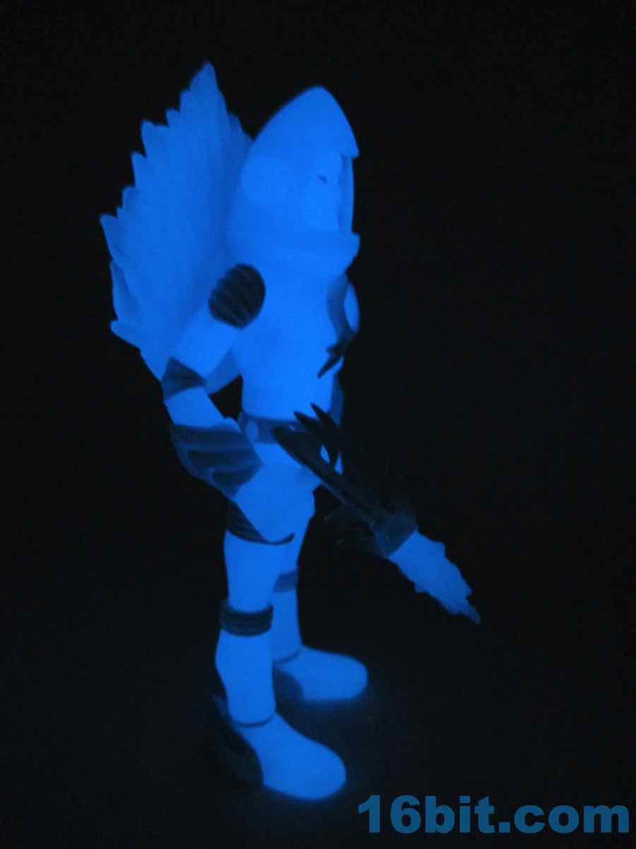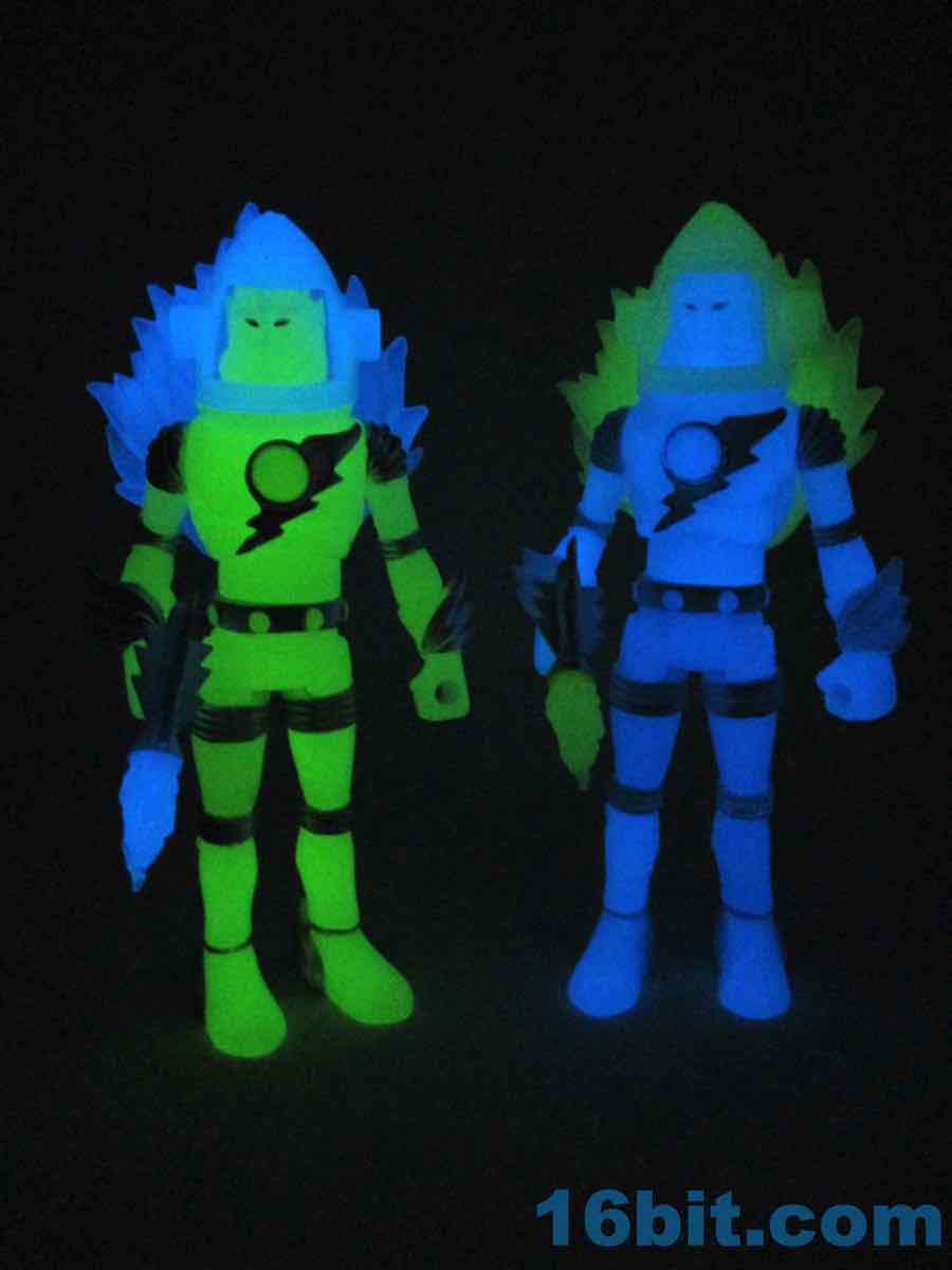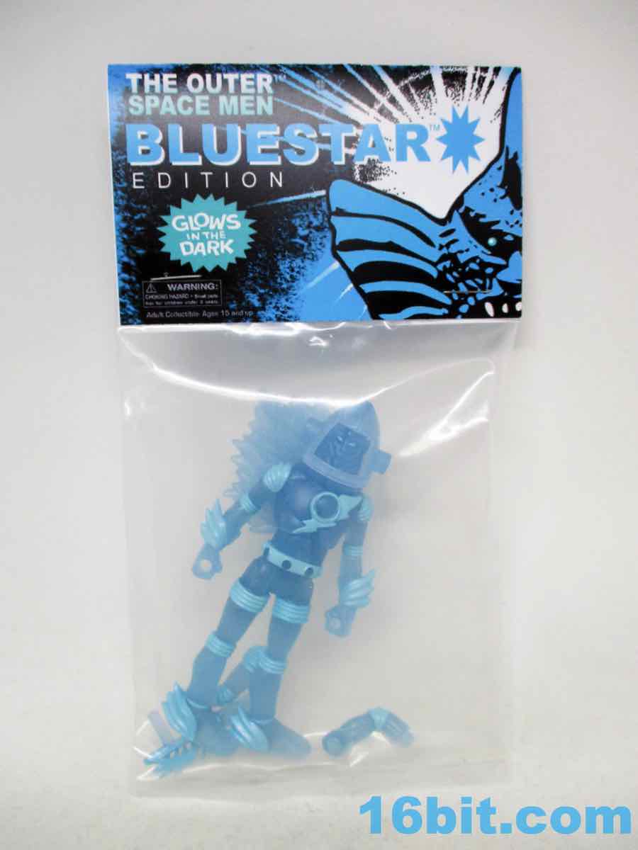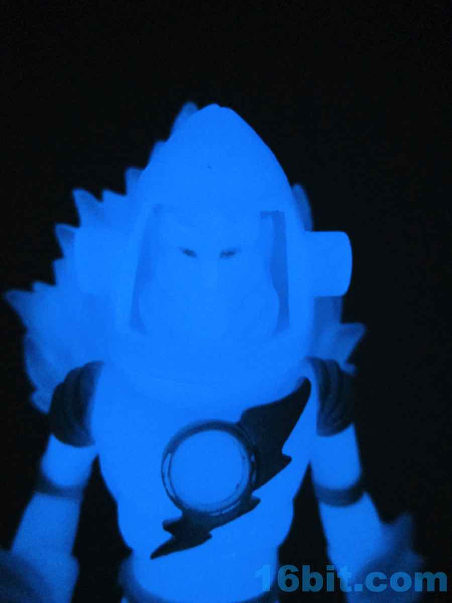 Since the 2010 relaunch The Outer Space Men has been pretty stop and go - periods of inactivity are followed by huge bursts of releases, and Bluestar Inferno kicked off the impressive-but-pricey blue glow series late last year. As you no doubt know, the blue glow plastic used by this series (and all Glyos or Onell Design figures) tends to shine incredibly brightly. A short exposure to UV or sunlight means hours of blue glow, be it dim or brightly depending on when you examine it. I've seen these figures glow after eight hours... just not incredibly brightly when hour eight rolls around.