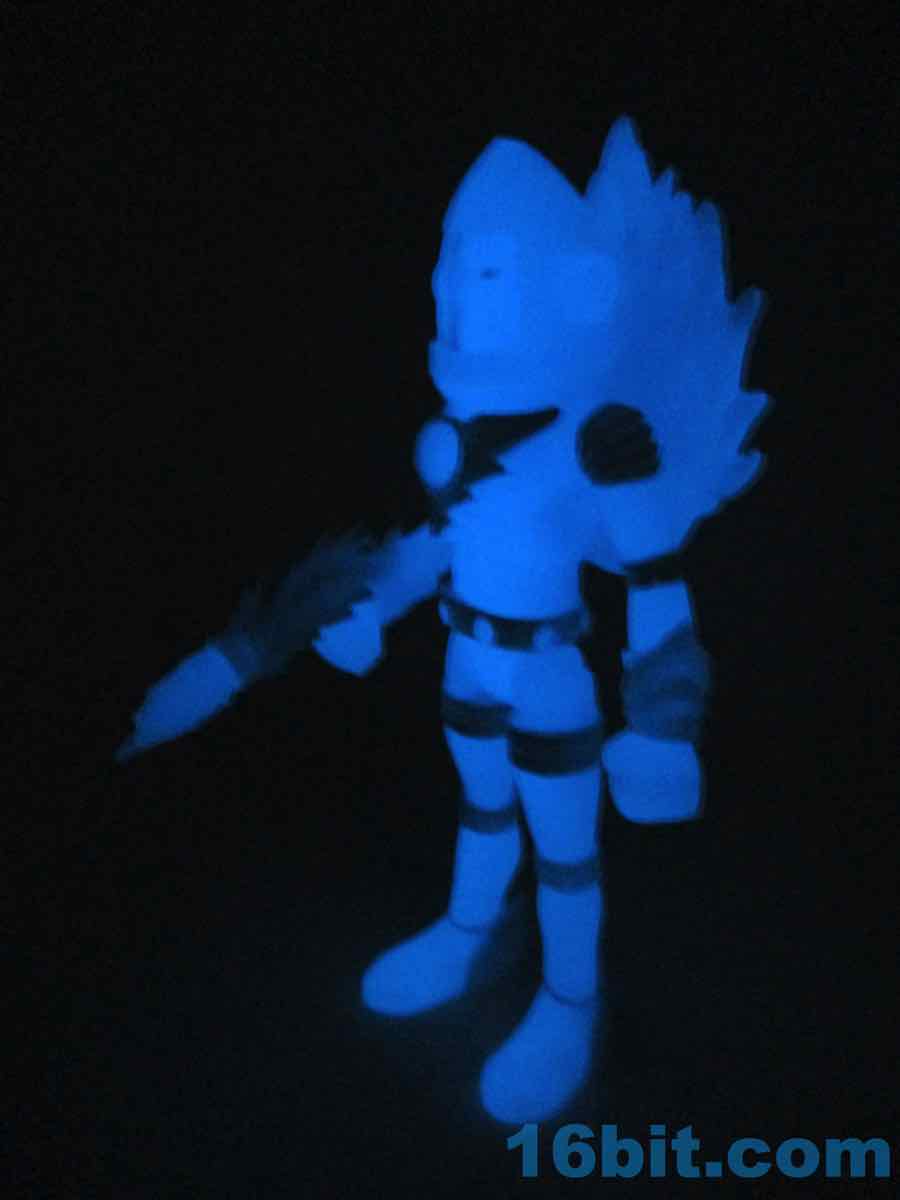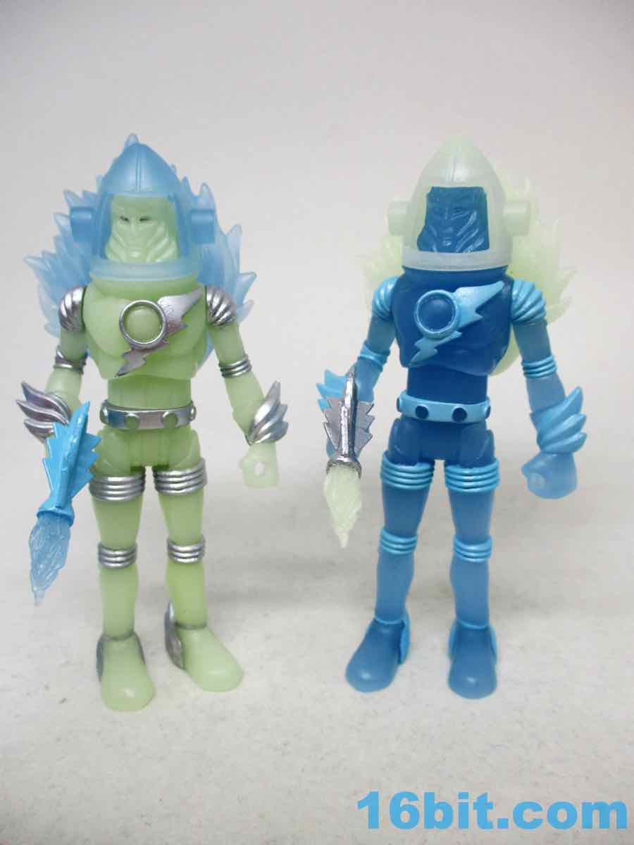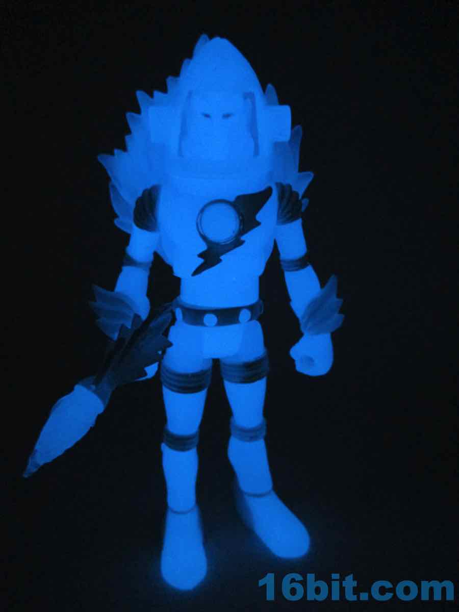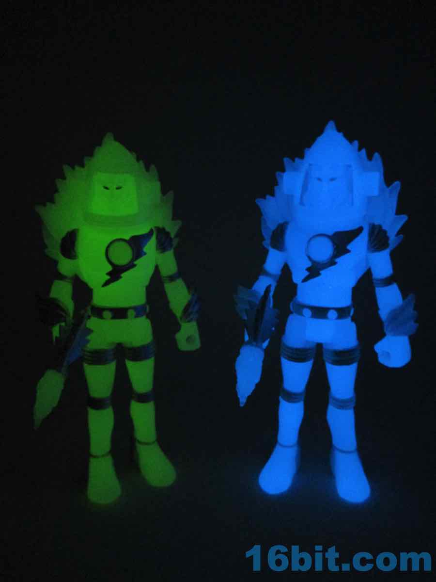 Since the 2010 relaunch The Outer Space Men has been pretty stop and go - periods of inactivity are followed by huge bursts of releases, and Bluestar Inferno kicked off the impressive-but-pricey blue glow series late last year. As you no doubt know, the blue glow plastic used by this series (and all Glyos or Onell Design figures) tends to shine incredibly brightly. A short exposure to UV or sunlight means hours of blue glow, be it dim or brightly depending on when you examine it. I've seen these figures glow after eight hours... just not incredibly brightly when hour eight rolls around.