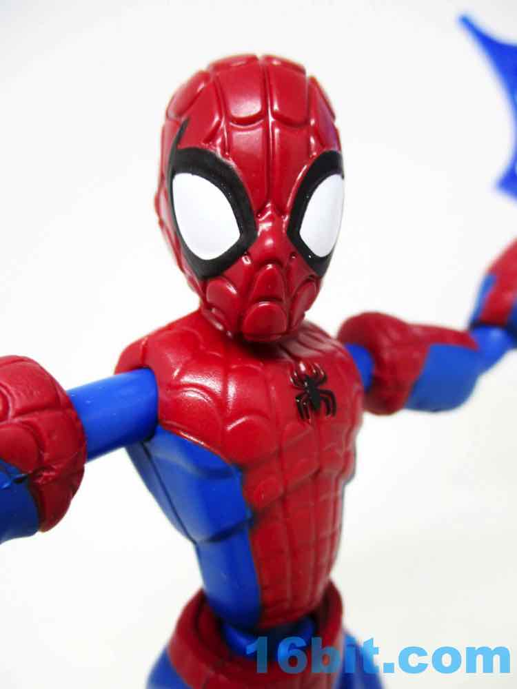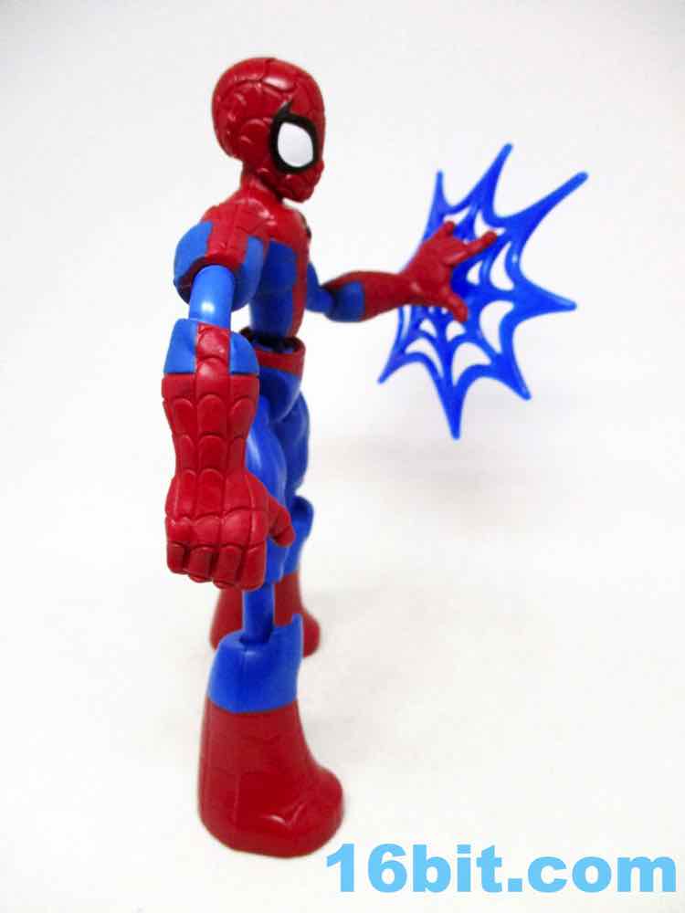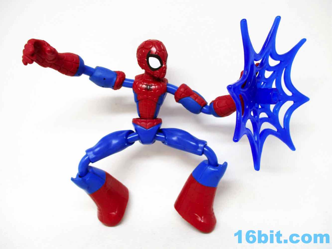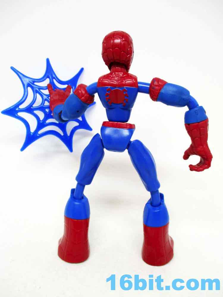 But - and this is key - they seem like they're going to hold up to rough play, to storage in the toy box, and to being flung off the roof. Titan Hero Series are partially hollow and could crack with abuse. The deco of the Bend and Flex Spider-Man is better than those 12-inch figures, and while the sculpted webbing is undecorated everything else looks good. The back of the figure is painted nicely, the head is good, and there's no element where I look at this and say "they could have spent another quarter on paint to make this better." The figure turned out very well, although I will say I wish the torso piece was bigger. The tiny chest and giant underpants region is truly memorable, and this is the kind of thing I kind of wish I had as a kid. I had a couple of the X-Men Bend Ems, and Hasbro's effort is a lot better. And more expensive. But that's what you probably want - the durability of a bendy figure, but with the stability of an action figure. Being able to stand up is a huge plus, and the hands are big enough to grip accessories or other figures. You can really play with this thing, and it's not going to pop apart or flop over like a mega-articulated action figure.