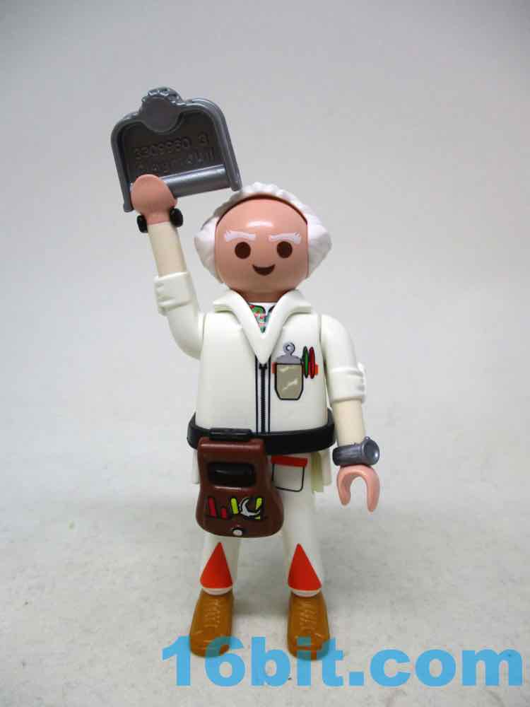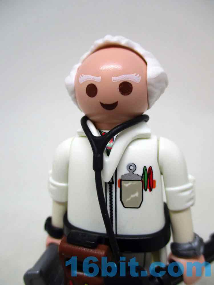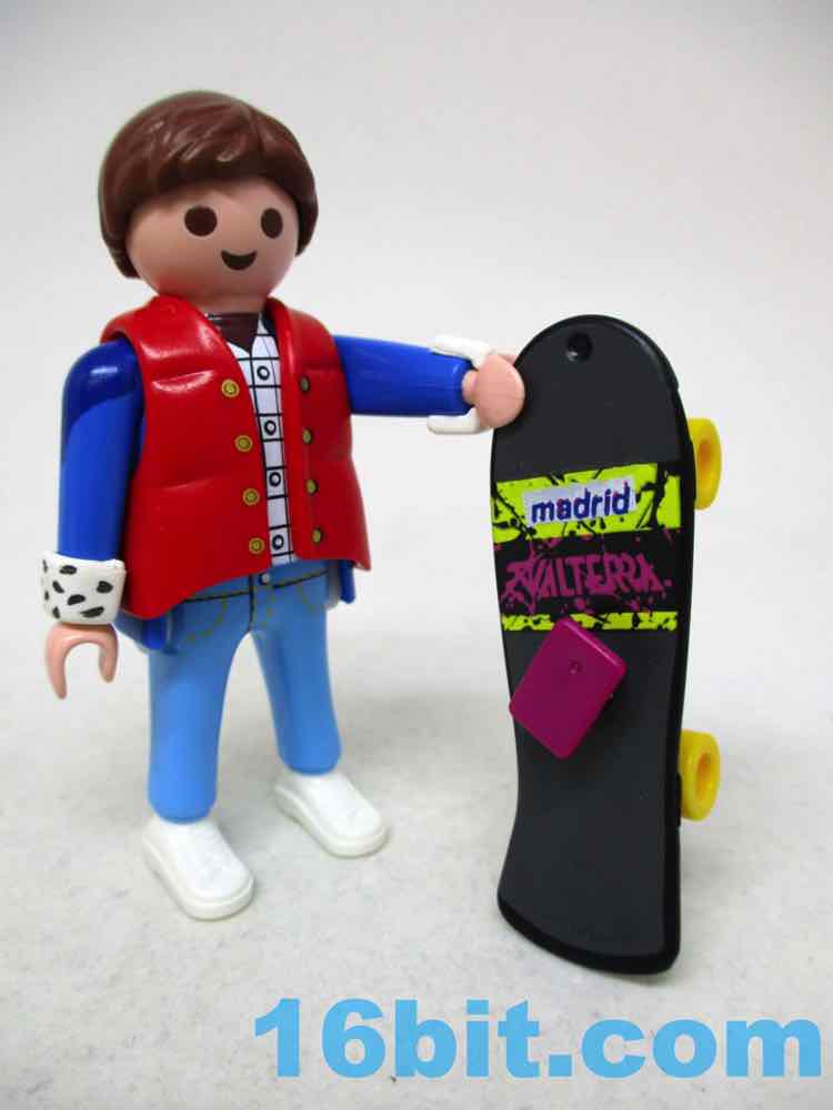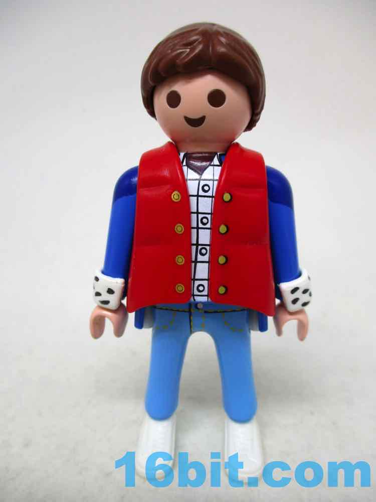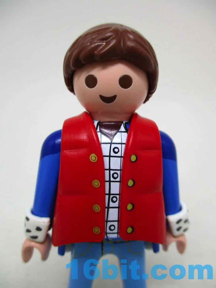 Meanwhile, Marty McFly is perfect. He has the piffy vest, the blue shirt even has the blue triangles on the shoulders. The stripes shirt is here, the cuffs on his sleeves are here, and the shoes are as good as Playmobil gets. It's quite a feat that Playmobil pulled off such a good figure using existing tooling with some new paint. You couldn't ask for a better Marty figure.