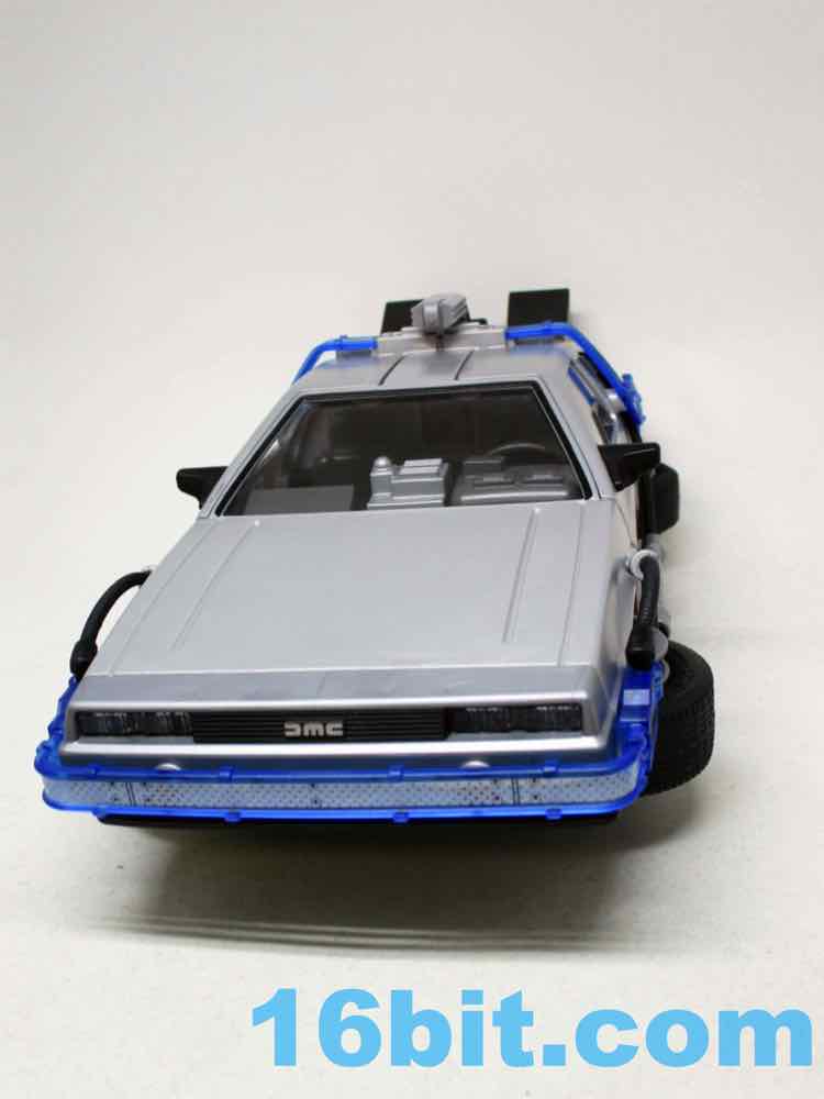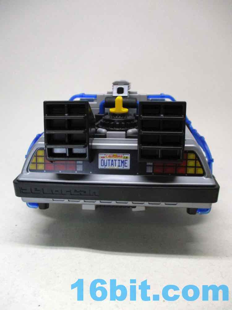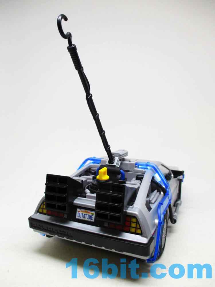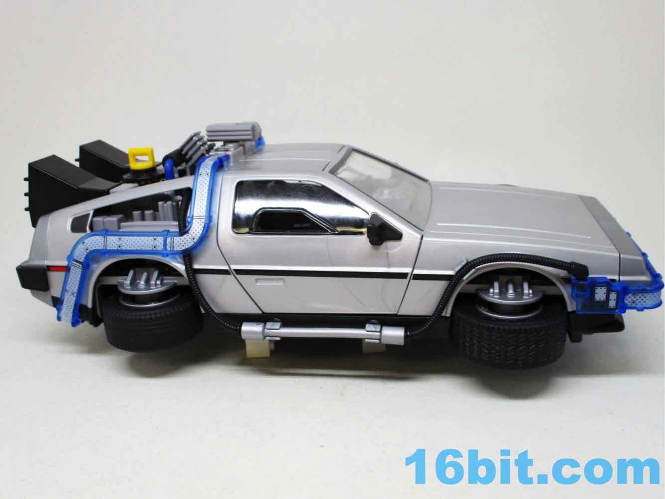 Toy lines for kids based on movies that may not be ideal for kids were a hallmark of the 1980s, and this probably fits that sort of ideal. The car itself is very good with a lot of features, and is priced similarly to Diamond Select Toys' excellent effort from over a decade ago - but it's smaller, and has no sounds. The front wheels don't roll as freely as the back due to seeming clearance issues, but there's a feature that makes me overlook this fault. The wheels can turn 90 degrees down for "hover conversion mode." You can also plug in the cable to grab the power line from the end of the movie to get the jolt of lightning, and it has seating for up to 2 figures - adult figures can drive, and kids or adult figures can sit in the passenger seat. The detail is excellent, with lots of snap-on cables, light-up elements, and details like the "DMC" logo so often missing from other collectibles based on this movie.
