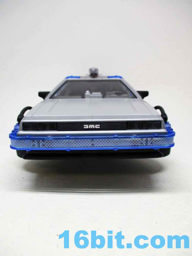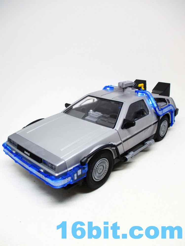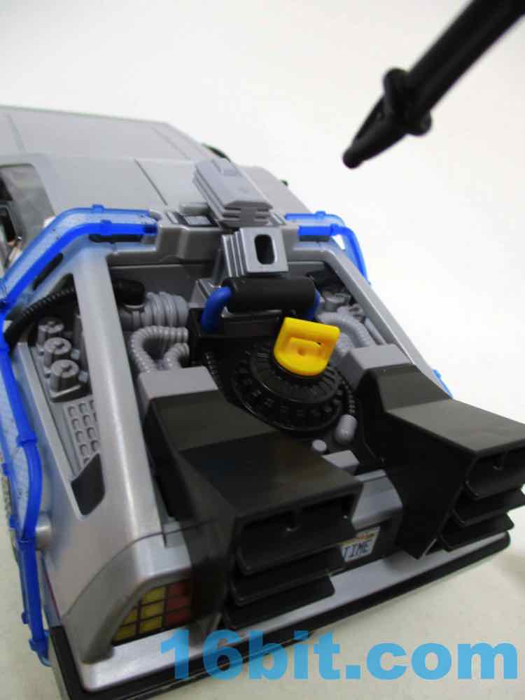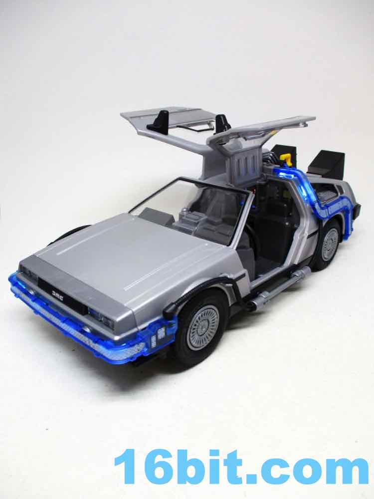Toy lines for kids based on movies that may not be ideal for kids were a hallmark of the 1980s, and this probably fits that sort of ideal. The car itself is very good with a lot of features, and is priced similarly to Diamond Select Toys' excellent effort from over a decade ago - but it's smaller, and has no sounds. The front wheels don't roll as freely as the back due to seeming clearance issues, but there's a feature that makes me overlook this fault. The wheels can turn 90 degrees down for "hover conversion mode." You can also plug in the cable to grab the power line from the end of the movie to get the jolt of lightning, and it has seating for up to 2 figures - adult figures can drive, and kids or adult figures can sit in the passenger seat. The detail is excellent, with lots of snap-on cables, light-up elements, and details like the "DMC" logo so often missing from other collectibles based on this movie.