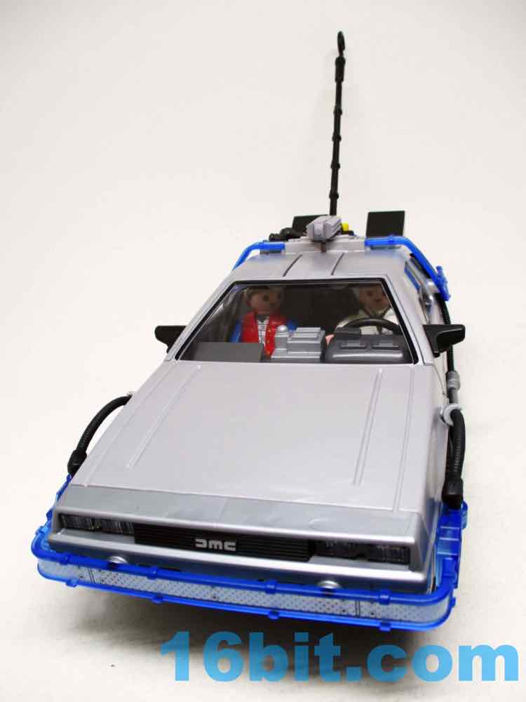 You also get a remote control for Doc, Marty's camcorder and skateboard, and a ton of Doc's other gear. Both figures have snap-on elements like Marty McFly's shirt sleeves and Doc's multiple watches. I love that you can plug in the plutonium can in the back of the car, but sadly the antenna from the movie's climactic trip back to the future has no storage space. It's just going to float around toy boxes and get lost unless you've got some fastidious young toy collector.