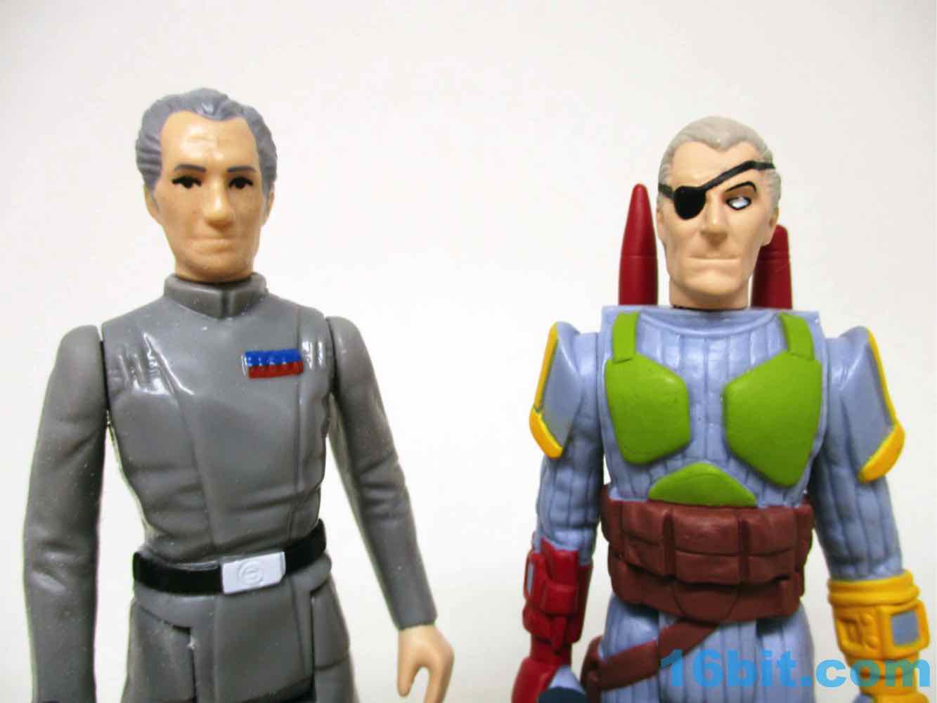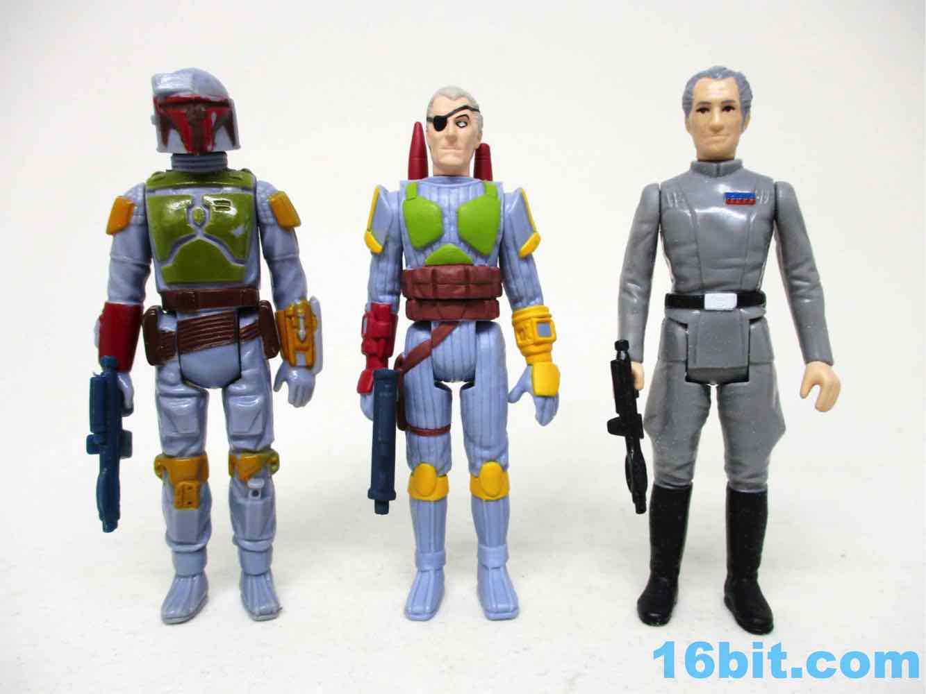 I love the figure's sculpt as a pastiche of 1970s and 1980s toys. The pants and arms look a bit like Darth Vader, the torso is a lot like Boba Fett, the heads look like Cobra Commander and Grand Moff Tarkin... it feels old, but it's new. That's a hard thing to pull off in this day and age, and as much as I love the Boba Fett colorway I find myself very glad I also got the Shadow one a few months ago. Each has its own perks, but an off-the-wall color can do wonders to making a good figure great. The Boba tribute was obligatory, but now that we got Fett and Cobra Commander out of the way I hope that Team Healey Made come up with some oddball looks that feel like they came out of the late 1970s. Nicely done. It sold out in 12 seconds, so clearly, demand still exists for them to try again with any of many other Boba Fett armor looks, too.