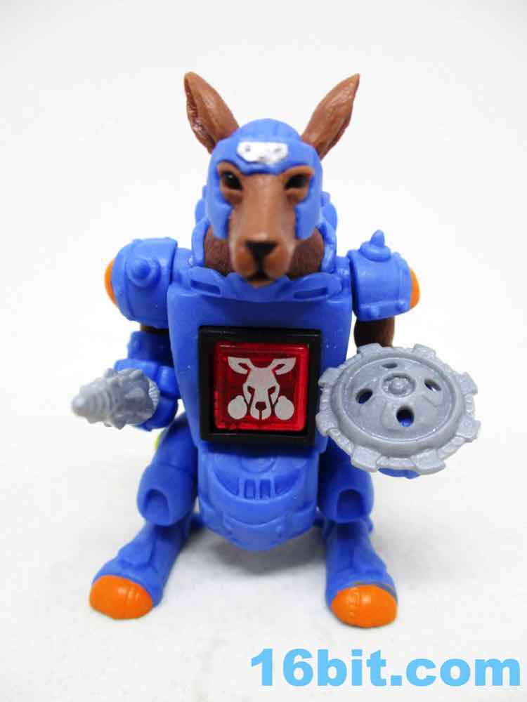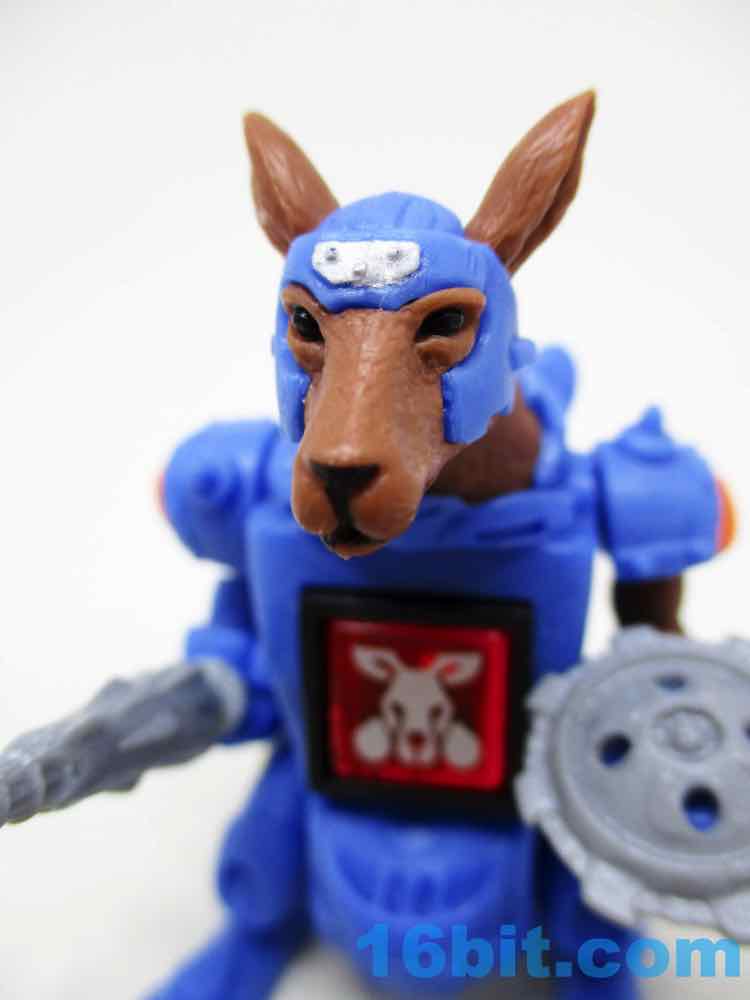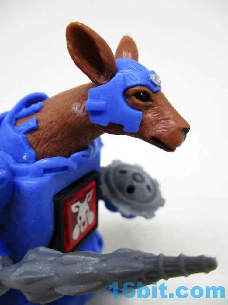 The boxing kangaroo is some weird symbol that has stuck around for ages, especially in the 1980s with Battle Beasts and the old Atari game Kangaroo. It hasn't really come up much since then, but you can see the iconography on the figure with big, gloved fists. Another kangaroo feature integrated into the armor is a hint of a pouch, even though it looks more like a codpiece and serves no functional purpose.