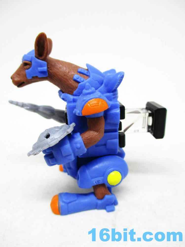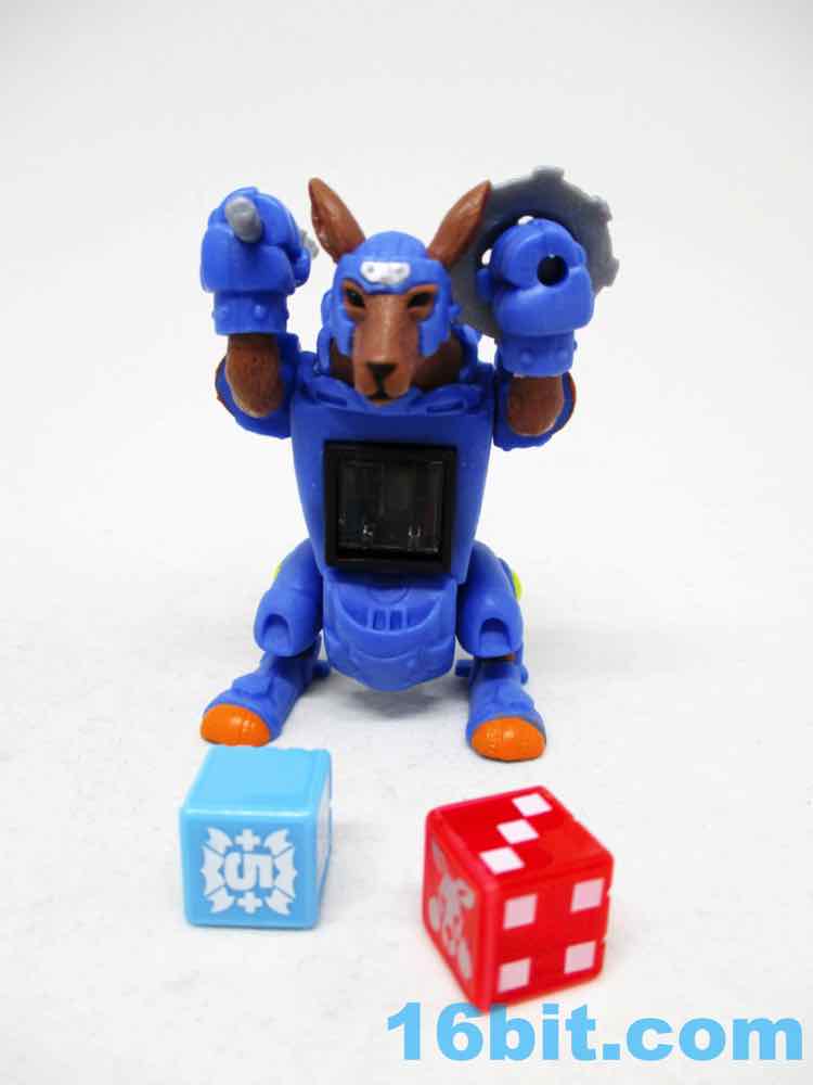 With just 4 points of articulation and the dice launcher, Takara-Tomy went out of their way to give the furry creature's head some personality. It almost looks realistic, with marvelous brown textured plastic and bright blue armor with orange and yellow highlights. The roughly 3-inch figure is sturdy, but you can pop off his articulated limbs with sufficient force. The same is true with the dice launcher in his chest, it can be removed with the right kind of pressure.