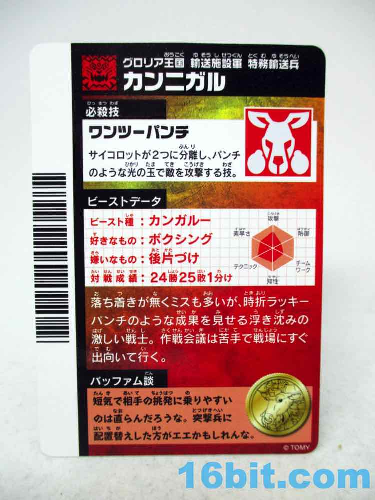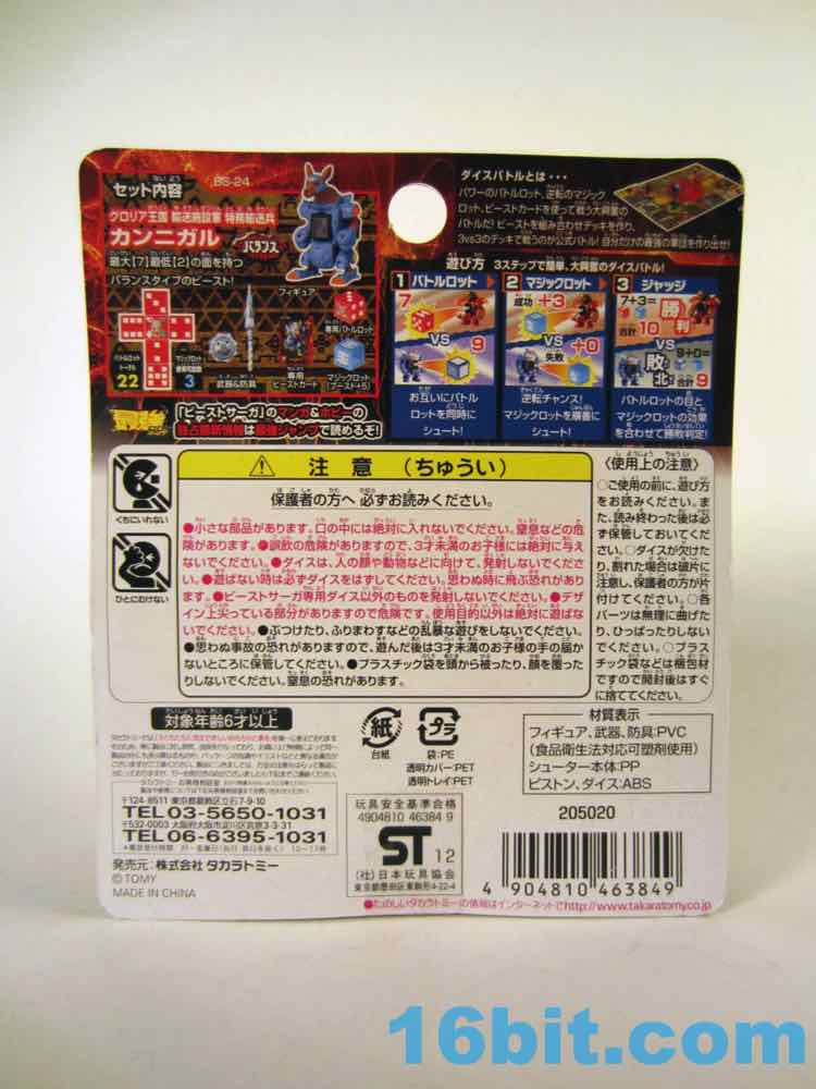 Item No.: BS-24 Manufacturer:Takara-Tomy Includes:Sword, shield, 2 dice, trading card Action Feature:Dice launch out of stomach Retail:525 yen (or about $7) Availability: October 2012 Other: Also translated as Kanigaru
