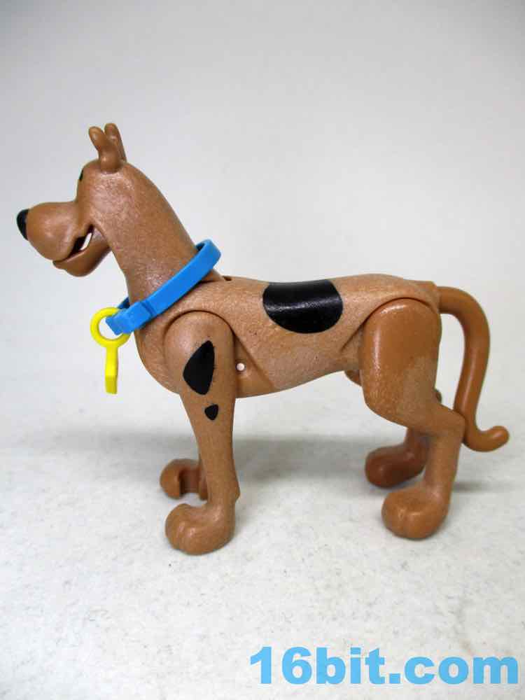 The newly-molded Scooby is in at least six sets, some of which include hats. The figures are the same, with a clip-on blue collar complete with yellow "SD" tag. Scooby has 6 points of articulation and seems to be a new design with an opening mouth and, of course, cartoon-specific head. It's interesting to see where Playmobil decides to eschew stylized sculpting in favor of something true to the license. I love that the mouth can open, and also that the front paws have indentations allowing Scooby-Doo to hold accessories or food. The figure also has a display stand so he can walk around on two legs if you like.