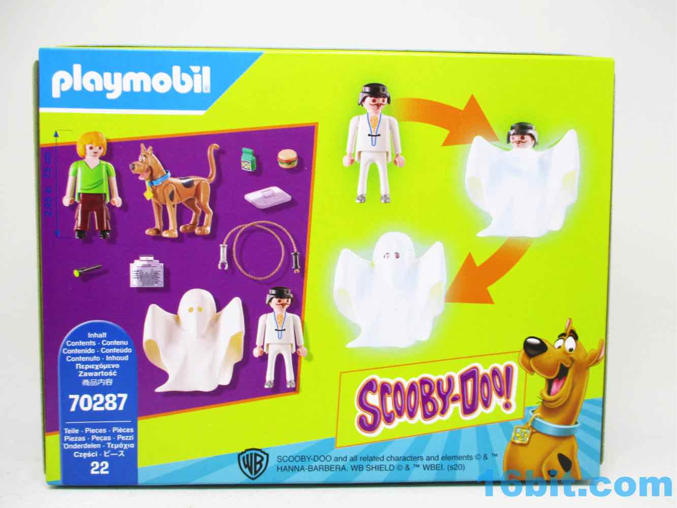 Item No.: No. 70287 Manufacturer:Playmobil Includes:Man in 2-piece ghost disguise, Shaggy figure, Scooby figure, 2-piece collar, rope, hamburger, Scooby Snacks, flashlight, display stand, clipboard with ghost information, stickers Retail:$12.99 Availability: July 2020 (mass release, first-out at Walmart in Spring 2020) Other: Lots of new toys from Scooby-Doo! this year