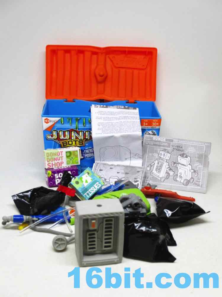 I saw some pictures of the Junk Bots from some friends and picked up a random 2-pack to see what I would get - and I got Trixie and Surge plus some extra parts. The robots are a decent size for the asking price, with one of the better "unboxing" experiences I've had. You don't get proper instructions - you get four plastic garbage bags, some random debris, and some cardboard boxes in a plastic dumpster that you can use to assemble the robots in the pictures, or build your own. It's clever - the figures also have optional mechanisms that may or may not function depending on what other electronic or motorized elements you may have.