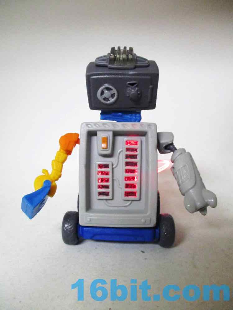 The first one I got together was Surge, which is made of - you guessed it - a surge protector, plus a safe and some other odds and ends. Once fully assembled, the robot has jointed arms, a jointed neck, rolling wheels, and a lot of personality. If you collect Glyos figures, it's a lot like that - every place where you can assemble pieces together is another point of articulation, and you can adjust it to your liking if you have enough parts and pieces. There is minimal paint on these figures, with Surge having a painted safe wheel, a little paint on a clear piece on his head, and one small part of his chest. This is what we saw on a lot of 1980s toys - molded in color, little paint, and maybe some stickers.