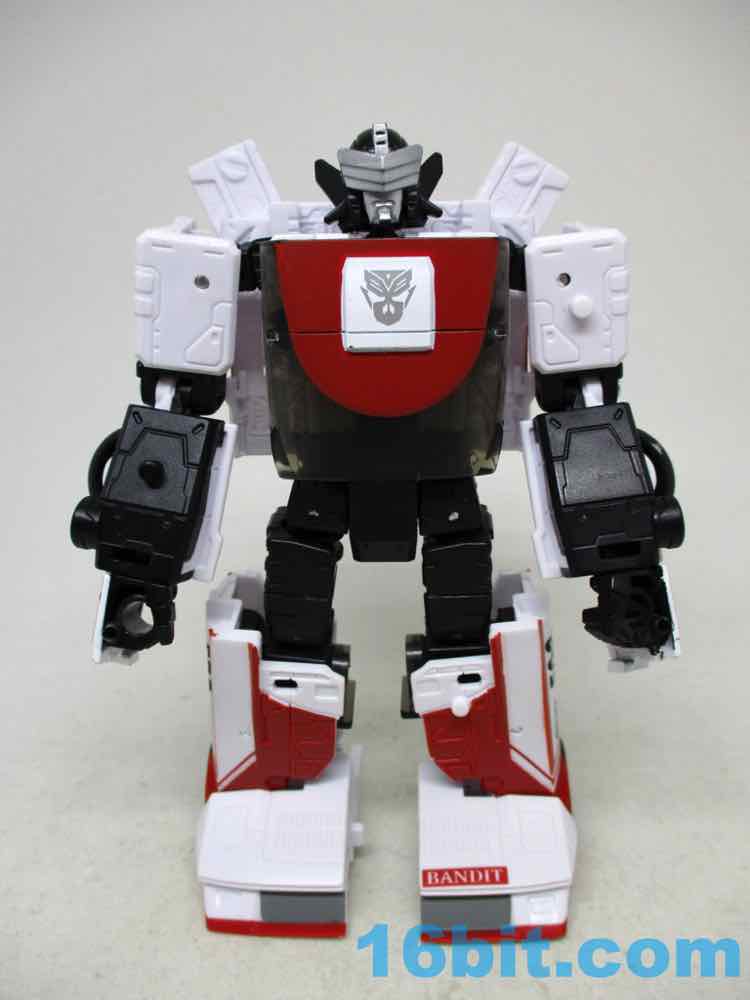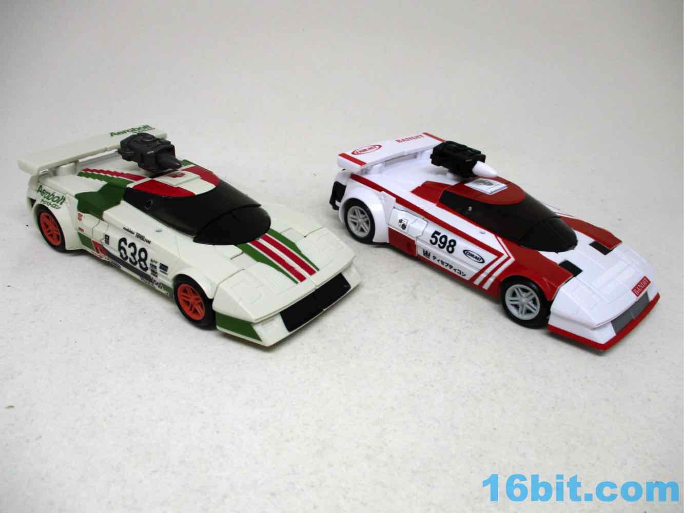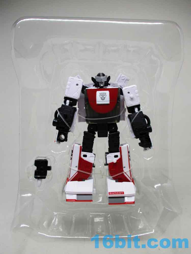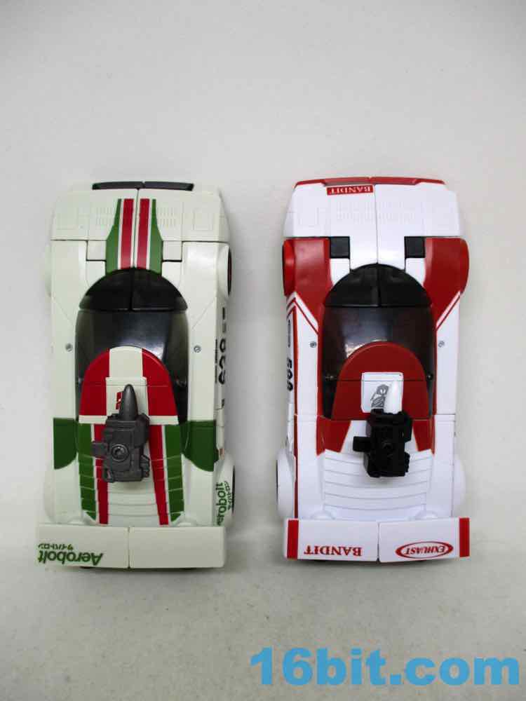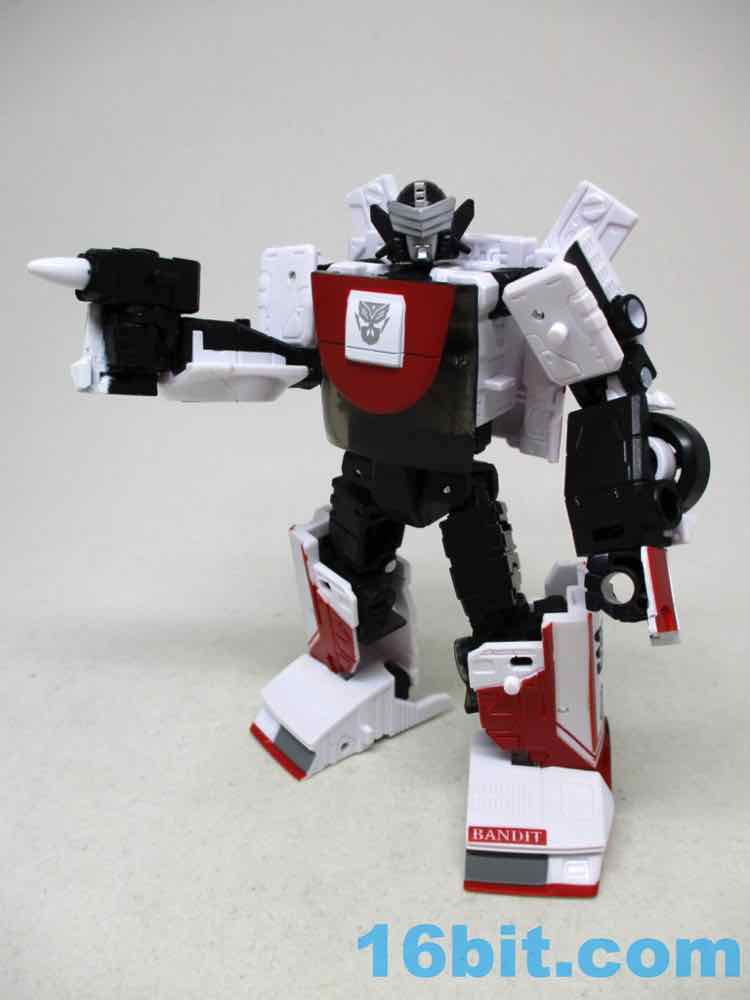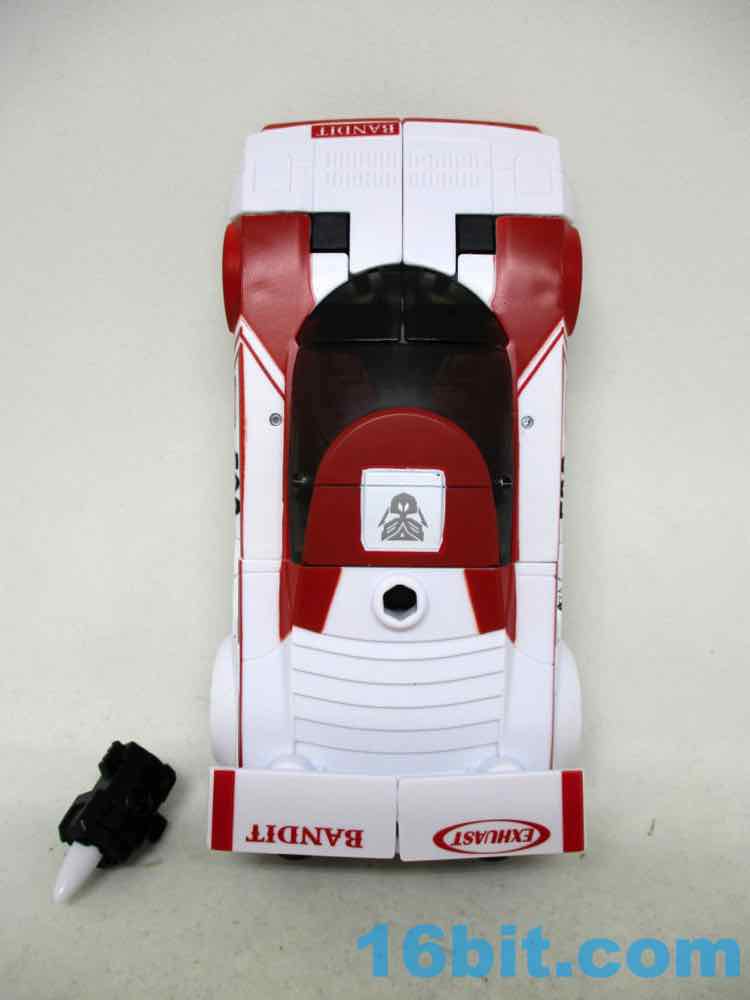 If ever there needed to be a name to perfectly sum up the emotional mood of the year, it's Decepticon Exhaust. Modeled loosely off an old race car which is itself modeled after a pack of smokes, this Wheeljack redeco/retool has been modified so it doesn't look like a pack of Marlboros anymore. While not nearly as ornate as Earthrise Wheeljack, Exhaust does have "BANDIT" and "EXHAUST" written on him as well as - I'm told - the word "Decepticon" in Japanese. It also has a 598 on the door - just like the original - but the classic Decepticon symbol was replaced with that of a mercenary faction.