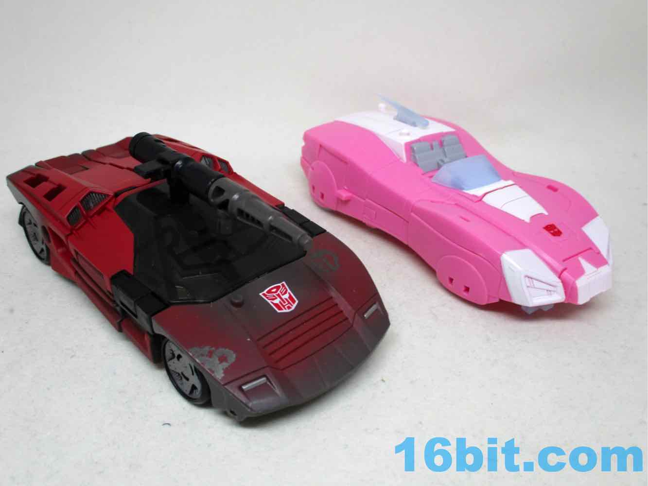 If you see this figure, you're probably going to buy this figure. It's Arcee! She's pink! She's $20! If you don't have one, she's a great find as a top-notch robot action figure contortionist with a boxy shell that could be better. It's not a fun transformation, but if you want the character it's a decent pick-up. I assume there will be mods with a better car shell down the road, but we'll see. I think I prefer the Thrilling 30 mold because of its better car mode, but the robot in Earthrise is surprisingly well-articulated and will spoil you for other Hasbro action figure toys. The dropped deco and weak car mode make sense given just how much better the articulation on the robot is over, well, just about anything I've ever bought from an American toy company.