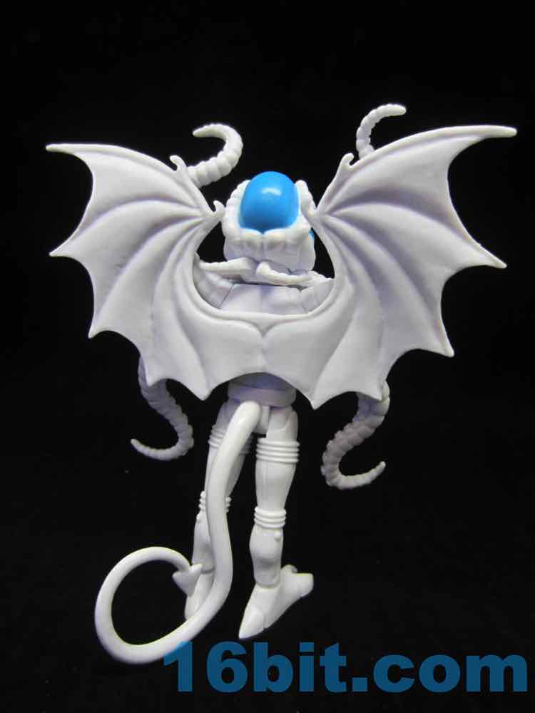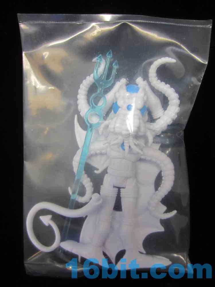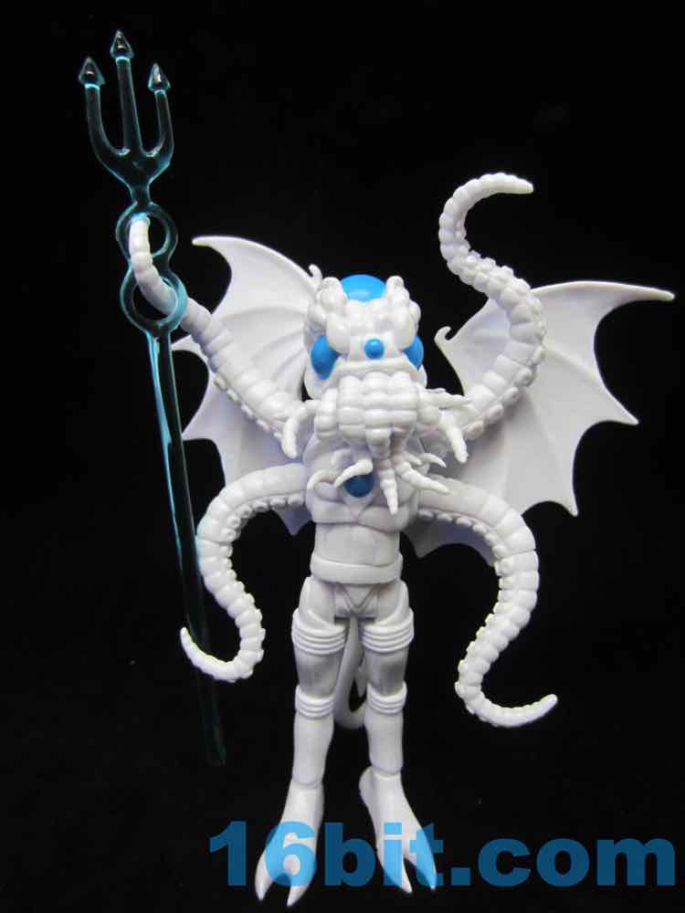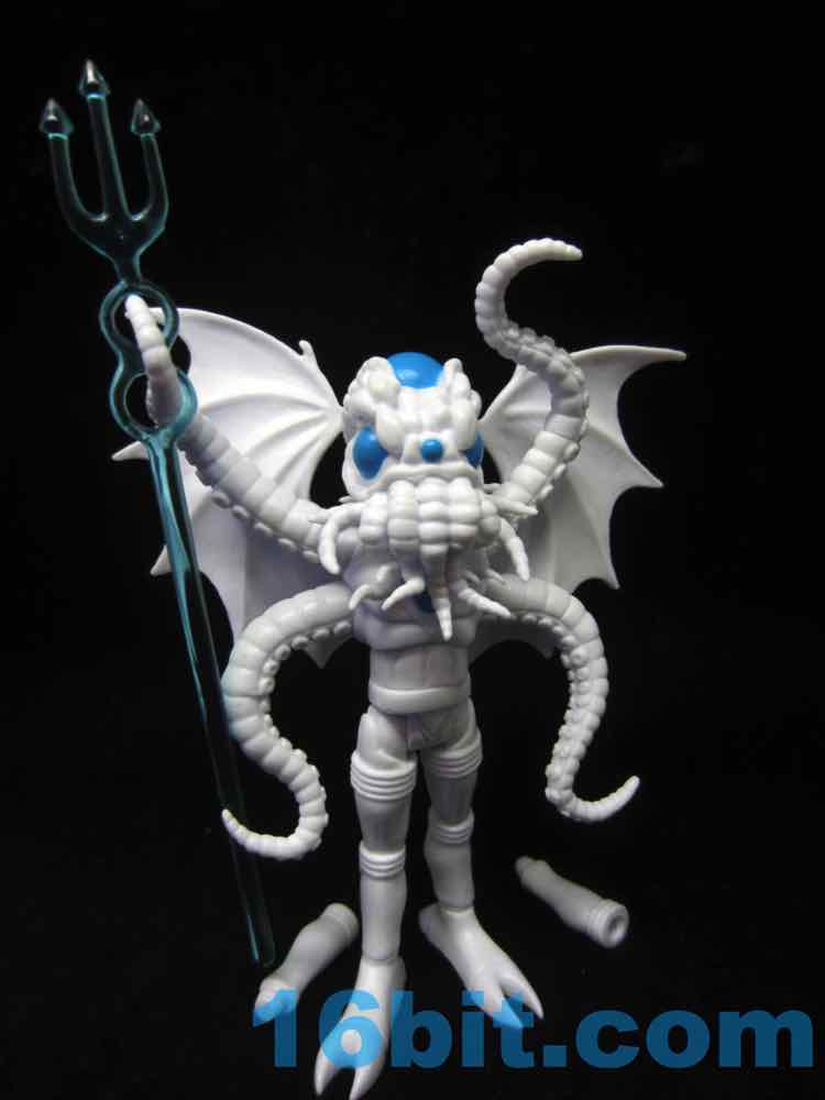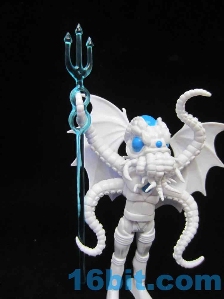 The big blue eyes don't draw attention away from the segmented head, complete with tentacles galore. It's like some sort of nightmare cephalopod/bat/bug turducken, complete with devilish blue trident. Articulation is good, with numerous removable, articulated pieces allowing you to pop off almost anything that doesn't suit your needs. Each tentacle arm is two jointed piece, the tail is removable and jointed, the neck is jointed, and for some reason the torso has two joints in it. It doesn't do anything to improve the figure - it's just a nice bonus.
