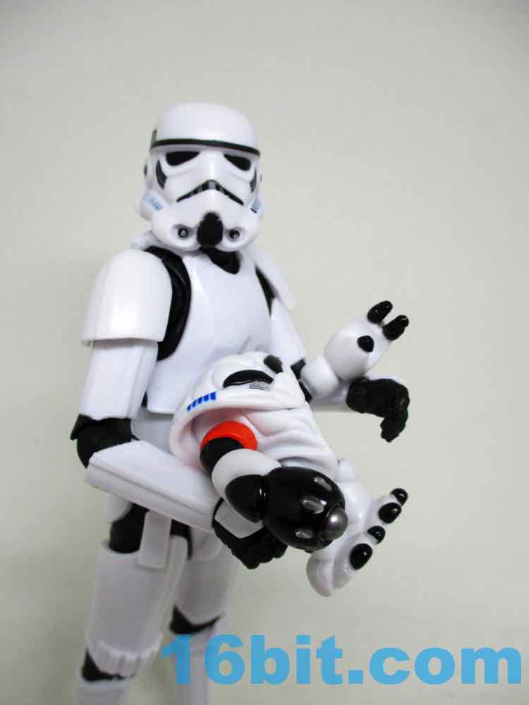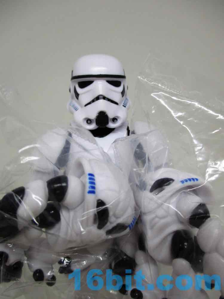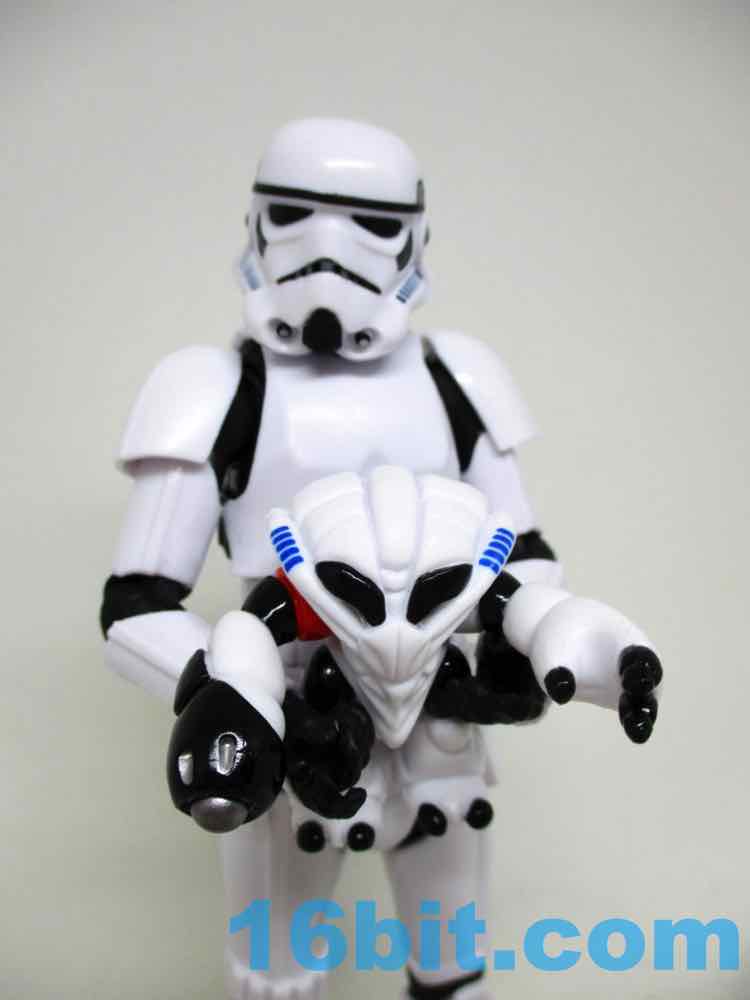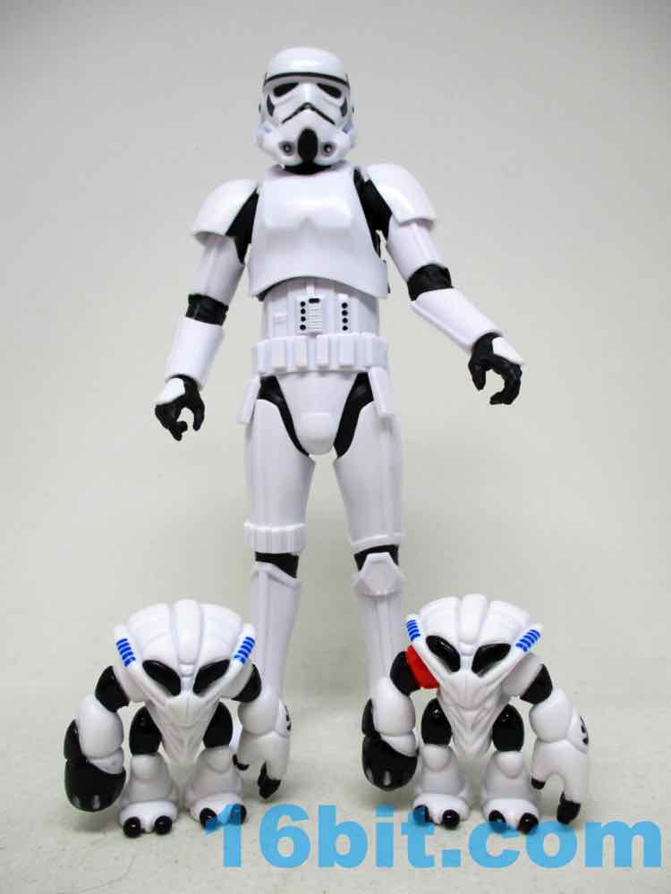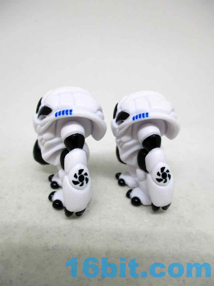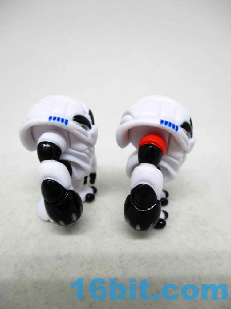 Since the 4-jointed figure is pretty much the same as it's ever been, deco is what makes it interesting here. The hands and fingers are black, as are the toes, hips, biceps, and "eyebrows" or lenses. There's also silver paint on the eyes, directly under the aforementioned reverse-orca spots, plus a unique Glyos symbol on the left wrist just over the claw. What really sells it, though, are the blue stripes from the Stormtrooper helmet replicated on the figure's head. In this case, there are five parallel stripes painted on the Crayboth, whereas a Stormtrooper has considerably more. It drives home the point quite nicely.