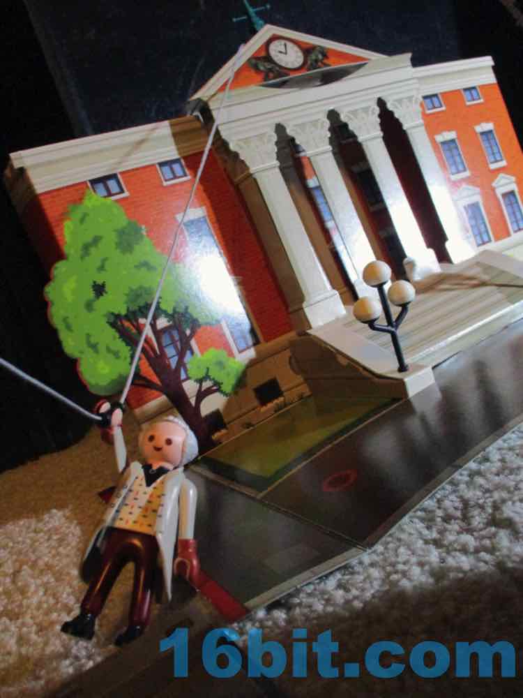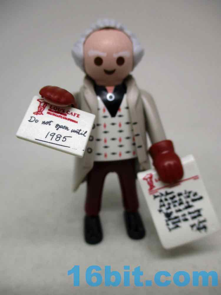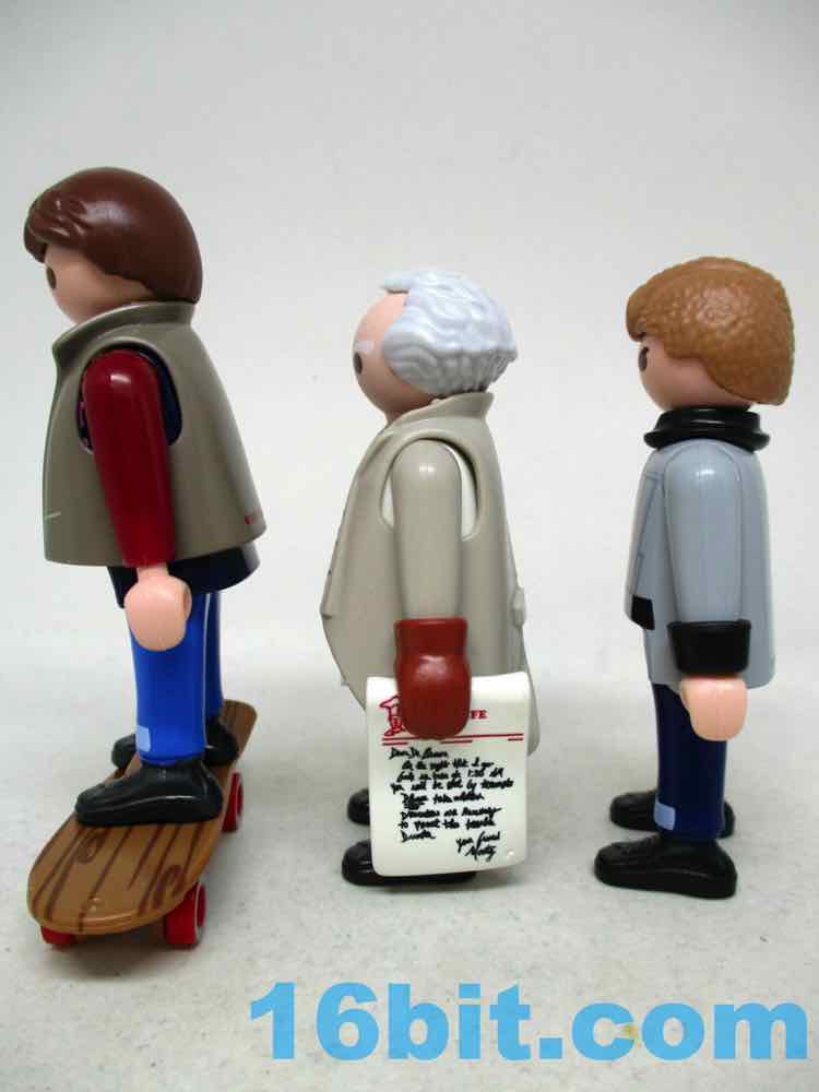 My Playmobil metric of "is this a good deal?" is if a big set costs $2 per figure or less - that's the "I'll buy anything" price. Since this is a new, full-price set my "good deal"-o-meter is $3-$4 per figure if the gear is good. 7 figures at $4 each would be $28, so it's on the expensive side for a set without much new tooling. The props and accessories are so good that I can't complain about what I got for the money - this is the set that you buy after picking up a DeLorean unless all you want are figures. At press time, this brings you every character from the movie currently available in the Playmobil format - but not every outfit. Rumor has it Back to the Future Part III trains and western sets are in the works, which pushes all my buttons if true. Playmobil cranked out a surprisingly good children's line for a movie kids shouldn't be allowed to see, and this set is an admiral grand finale were it to end here. But if it keeps going with 2015 future figures and hoverboards, 1885 stage coaches and nerdy teachers, alternate 1985 casinos, Western Union Count Floyd, and who-knows-from-when time trains? This could be an amazing toy line.