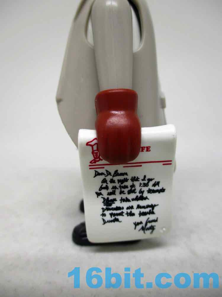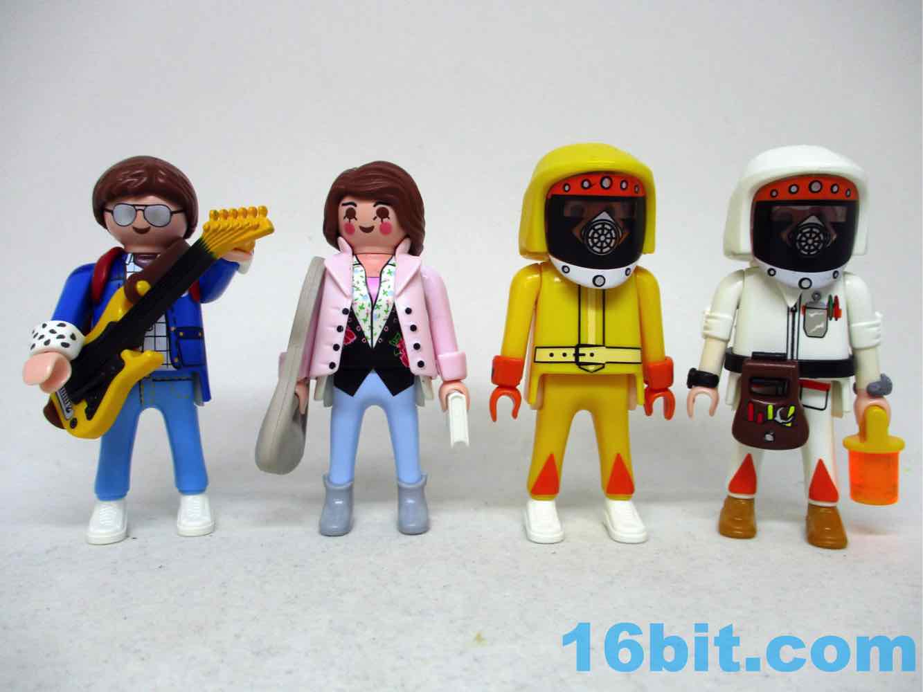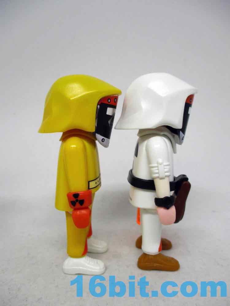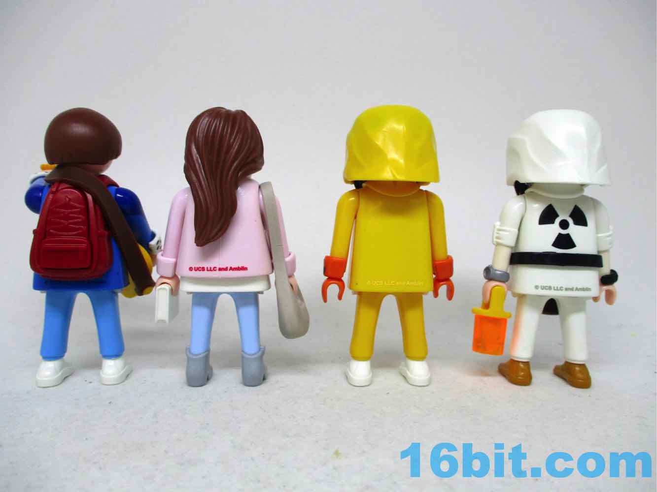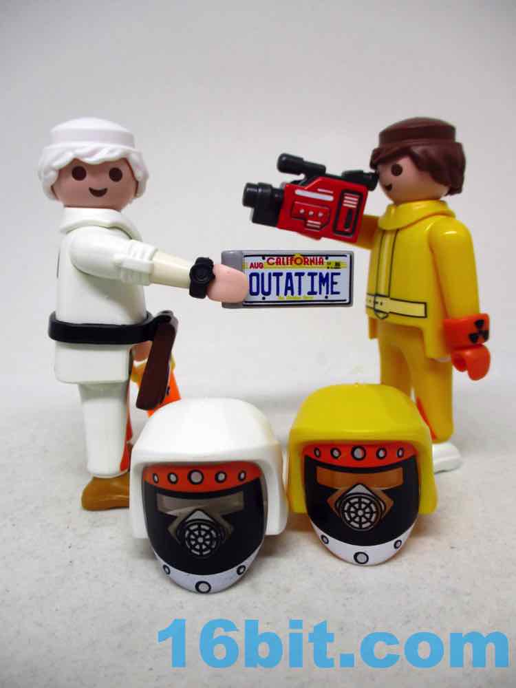 Radiation Suit Doc and Marty would have been great pack-ins with the DeLorean, but are just fine here. The helmets are the same ones we've seen used for years in various radiation suit sets, but without the clip-on suit bulk enhancements. Doc has clip-on watches to monitor time, while Marty has clip-on "glove" parts complete with radiation symbols. Articulation is standard Playmobil fare, with each figure standing 3-inches tall with 6 moving elements.