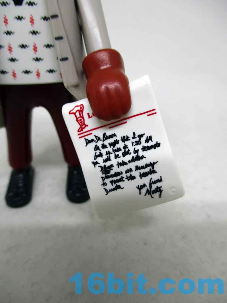 1955 versions of Biff, Doc, and Marty are also included. Biff's in his jacket with clip-on collar and cuffs, while Marty has the skateboard he made out of a broken scooter. Doc can slide down the included rope, and he also has gloves and the letter Marty wrote to prevent his murder earlier in the film. the deco is exceptional on all of these, but Doc is very similar to the previously released two-pack version. The woodgrain printed on the skateboard impresses, as does the label on the "Enchantment Under the Sea" sign. There's some more gear here, all of which is the usual level of quality you'd expect from Playmobil.
