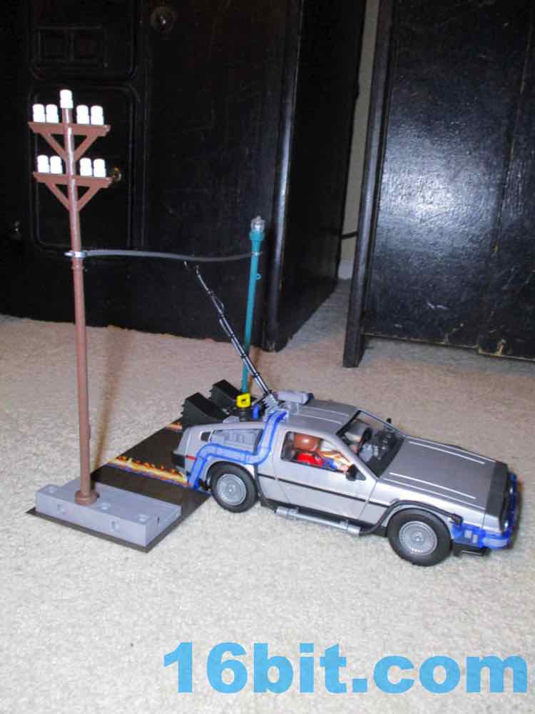 The electronics are impressive, but not robust - there's no sound effect. You get three modes of lighting - blinking, on, or off. The Flux Capacitor inside the car glows brightly and has the added benefit of making the dashboard look like it will glow. The blue cables also light up brightly, and if you're a parent you can also remove the electronic battery box completely if you prefer. It's not an option I often see on these toys.