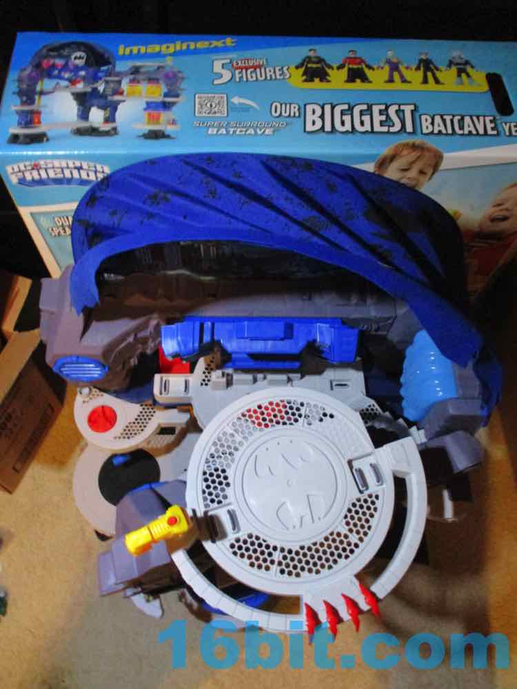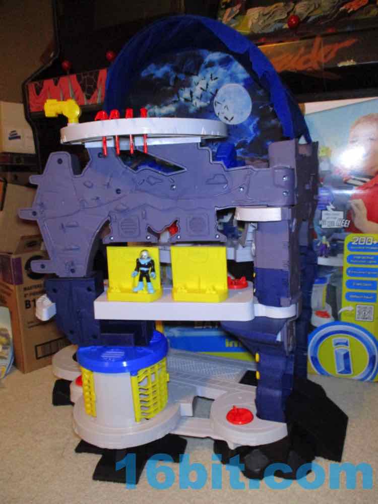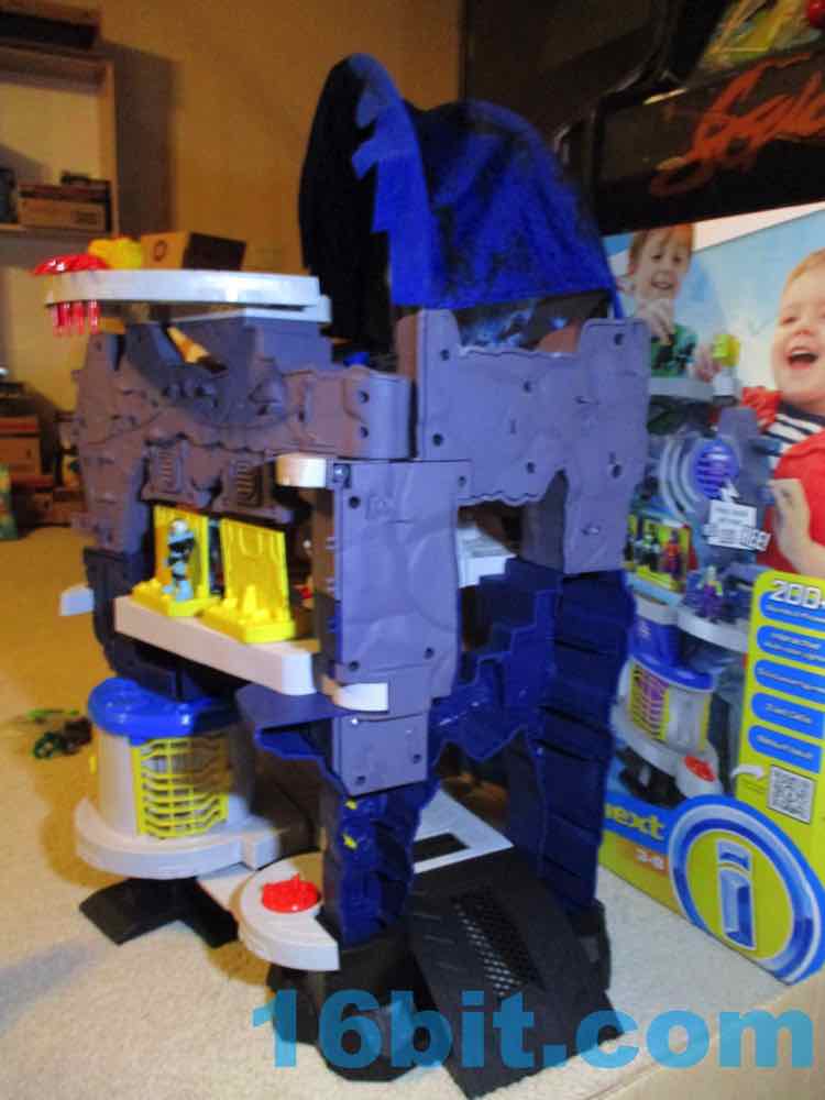 Once assembled it's close to 3 feet tall and 4 feet wide. You can fold it up, but it doesn't really fold up too well - it just takes up slightly less space. It's too big for most bookcases or shelves, but it does stand as an impressive monument to cost-cutting, simplification, and giving people more of what they want - while including copious amount of hooks for upsells. I didn't get any of the smaller Batcaves, and this thing is so huge I can't imagine wanting to ever get another one unless it was from some other boutique manufacturer. I wish I ran some sort of dork dad blog so I could convince everyone to buy it for their kids (with Imaginext toys), because the dumb thing will make you want to add a Batmobile, a Batcycle, and dozens of figures to your collection.