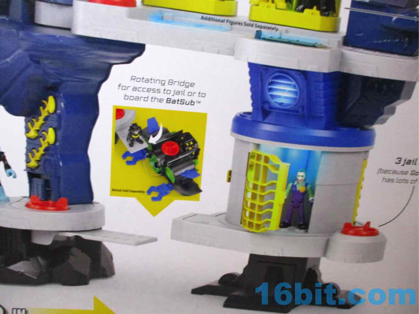 There's no sticker sheet and, amazingly, no paint except on the figures and buttons on the Bat-Computer. Everything is molded in color to keep costs down, and feels a lot like the Tim Mee Battle Mountain [FOTD #645] with less completely hollow elements. You have to connect some wiring harnesses together, screw in a panel, and tab a bunch of stuff together but it's an incredibly smooth process. There are tons of moving parts - some of which work better than others. The turning bridge is simple and works great. The jail mechanism has a switch to open the doors, but it seems you have to close them manually.