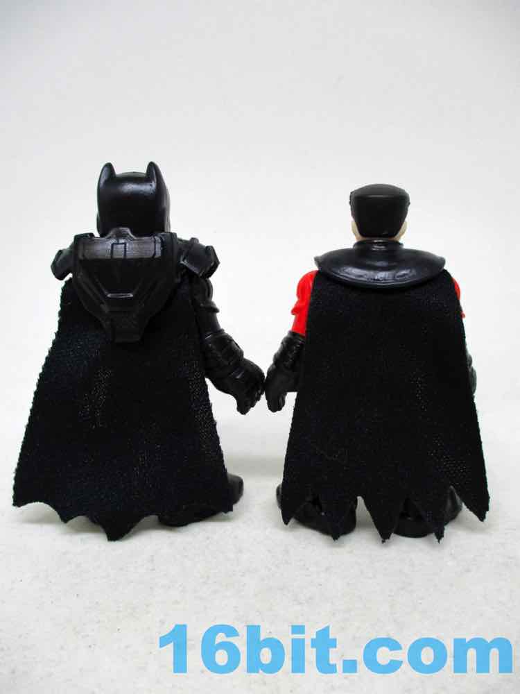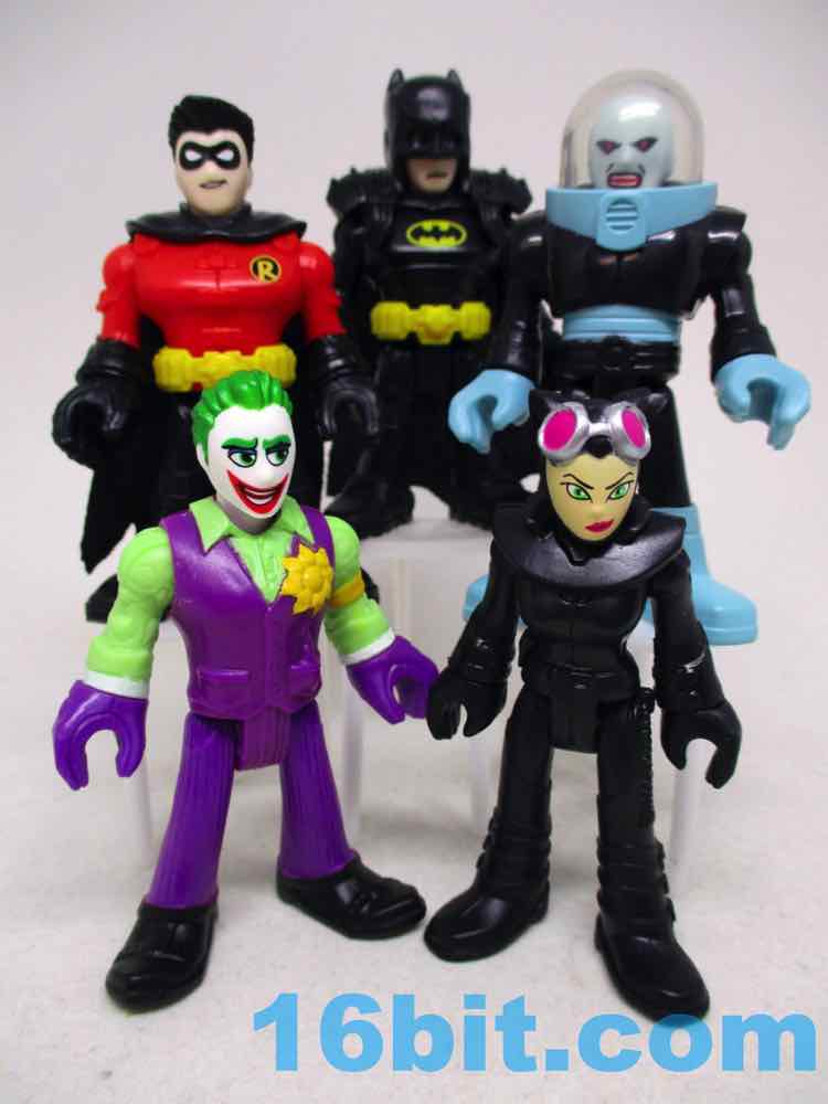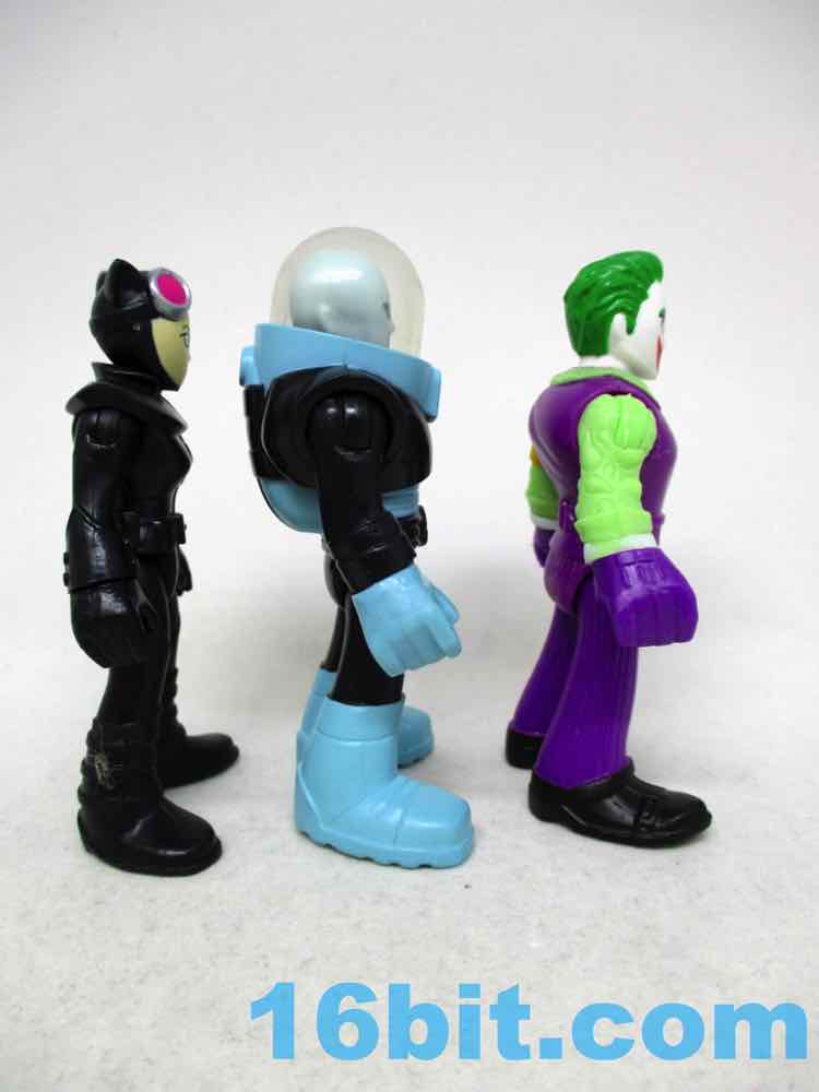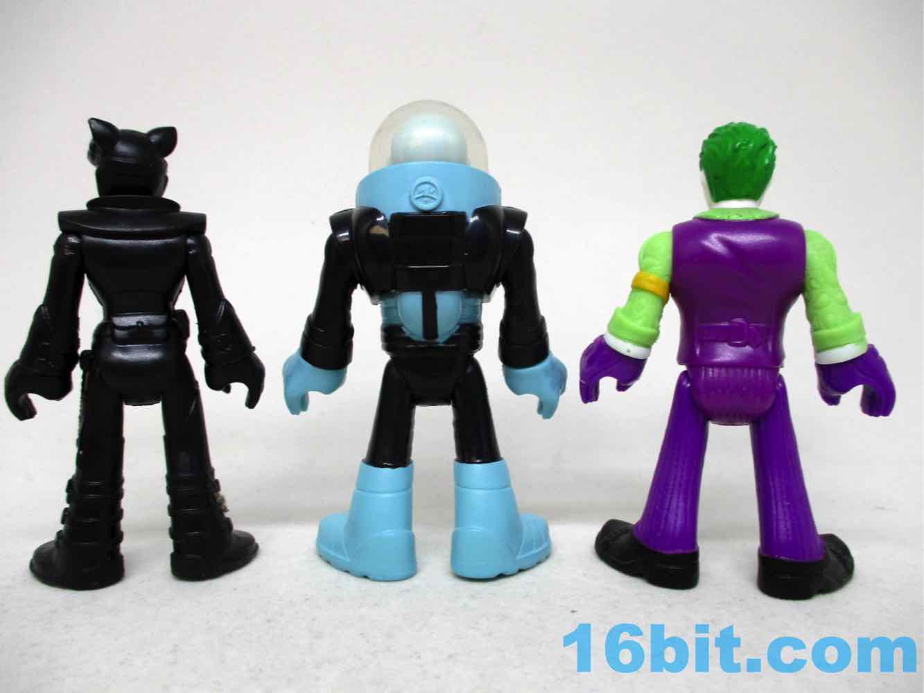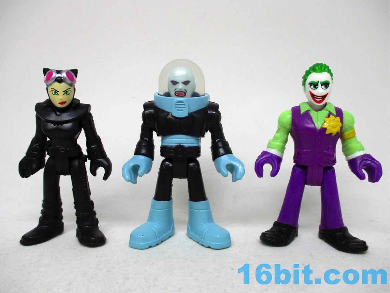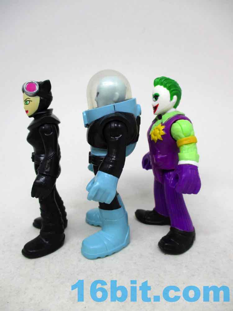 Five exclusive figures are boasted on the box, and indeed that's what you get. I don't love them. Batman has a removable cowl, but the eyes seem off - he comes in 1989 movie colors. The Joker has his jacket removed, so you can see his vest - but again, the face looks weird. Robin looks fine, but bulky. Catwoman also looks fine. Mr. Freeze looks like he could be repurposed for future "Adventure People" tributes, which I assume is bound to be happening if we ever see another wave of blind bagged figures. Sculpting is good as always, and all of the figures could probably be improved on just a bit with new face deco, as they have the same consistent good Imaginext builds. Except for Mr. Freeze's neck, each figure has articulated heads, wrists, shoulders, and a uni-leg hip.