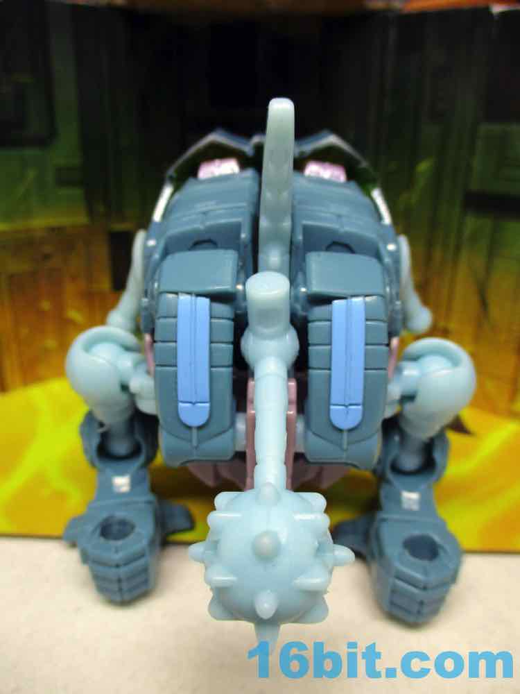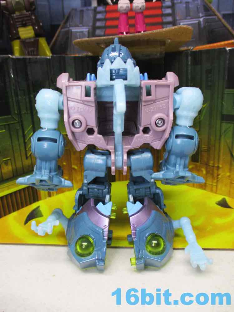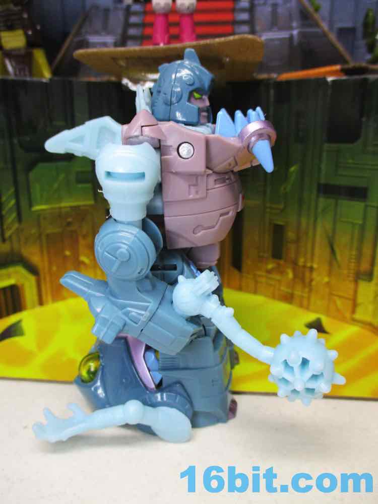 Transformation is still simple, with the feet becoming the top of the head and body, while the torso is the lower body. The head isn't quite as colorful, but the beast mode's mouth still has pegs and seating for one Titans Return-scaled Titan Master. One isn't included, but you probably have a few - and if you don't, they're getting some reissues at Walmart next year.