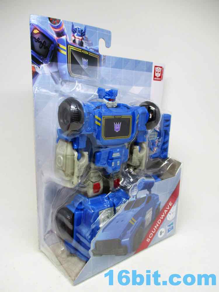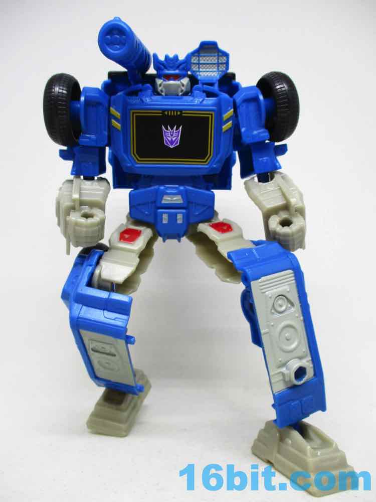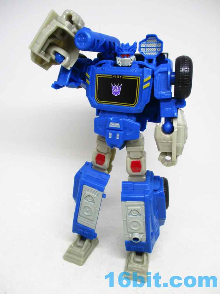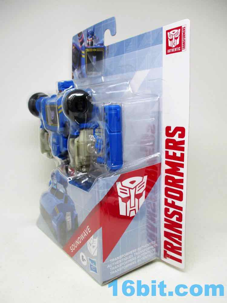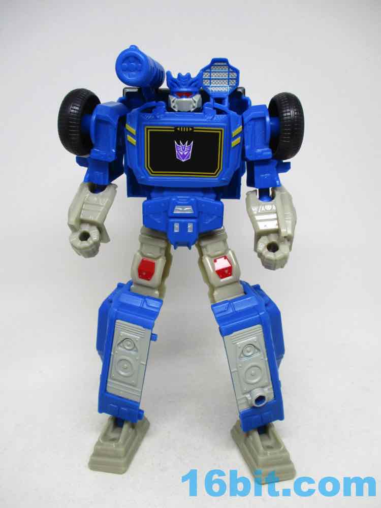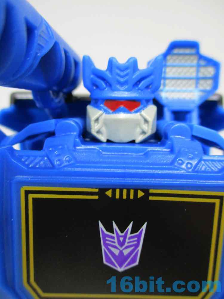 This Soundwave makes all 11 joints work nicely, with other moving parts thanks to his transformation. The ankles, shoulders, elbows, and hips are ball joints while the neck and knees swivel without a fight. It's not as amazing as a War for Cybertron toy, but it has a greater range of movement than the 1984 original at a fraction of the price. And no tapes. And no opening door. And no blaster. But it's still a pretty good Soundwave! He's taller than Megatron, standing a solid 7 1/2-inches tall. The lower legs really do seem unnecessarily long, but other than that the proportions are just fine. There are sculpted elements that should remind you of the original toys, but there are also a lot of speakers sculpted in the car and robot modes to drive home the point.