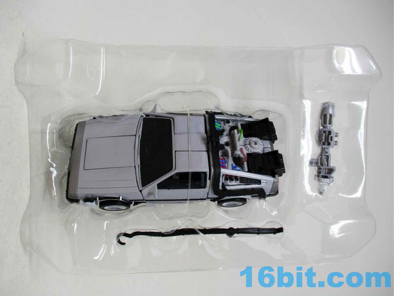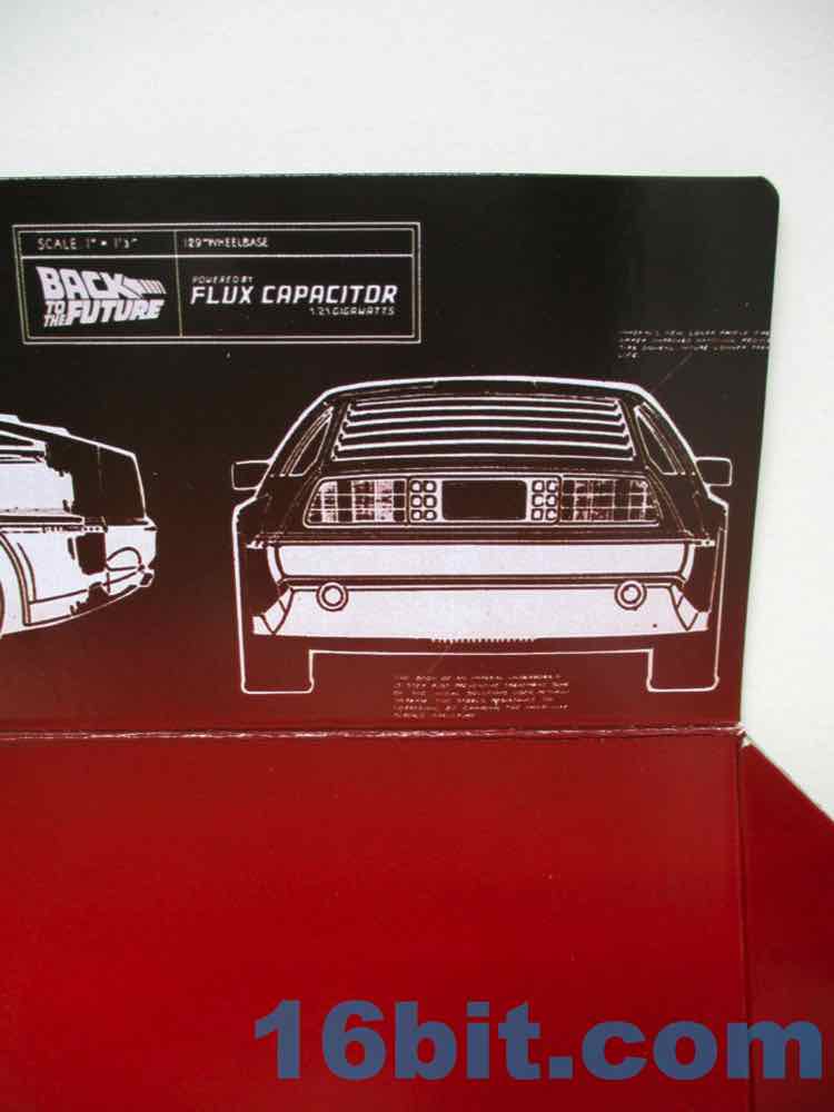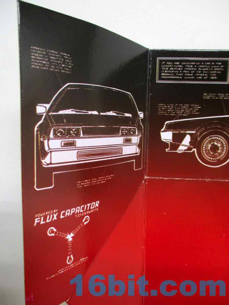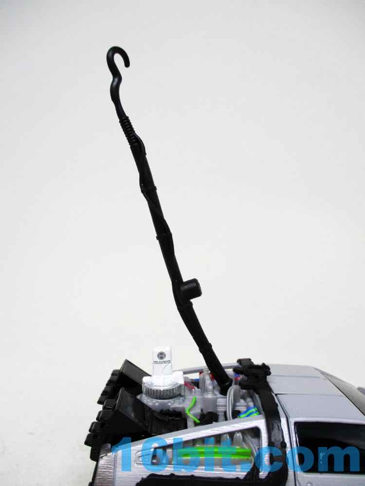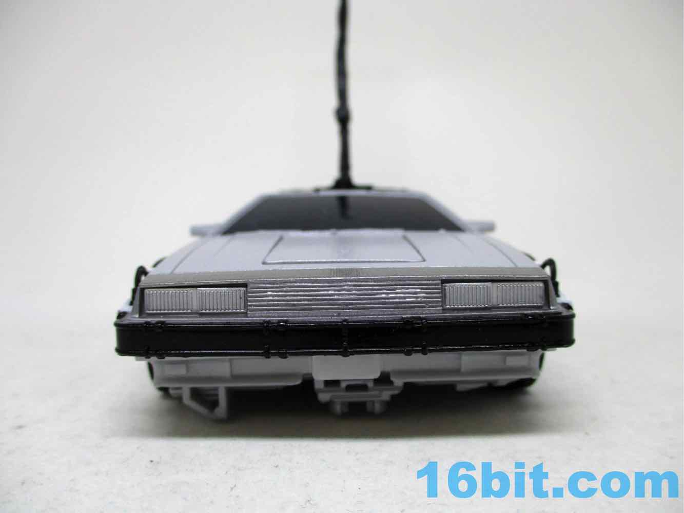 With two removable parts and the opening gull-wing doors, this toy does more than most other deluxe-sized cars in these lines. What really knocks me out is the back half with all the gears and cables - there's a lot of paint and bright colors here to show all the work done on the car. I dare say it's the most colorful take on this prop that I've bought as a toy in recent years, and of course the genuine articule is every more colorful with blue glowing cables andother odds and ends. The brake lights are red, the headlights are nondescript, the rear license plate is plainly visible, and the end result is a really good little toy car that's actually fun to futz with.