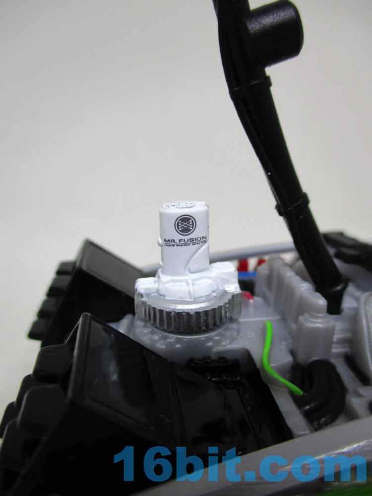His accessories are also pretty great. The whip/cable I could take or leave, but I like how the Flux Capacitor and blaster work. The blaster has a 5mm hole for C.O.M.B.A.T. effects, plus two places to plug in Mr. Fusion - on the back, or on top. I recommend putting it on top of the blaster because the back makes it harder for Gigawatt to carry it around. You can also stow Mr. Fusion on the back of the robot leg - but why? If you knock it off, it might be a while before you can find it again.
