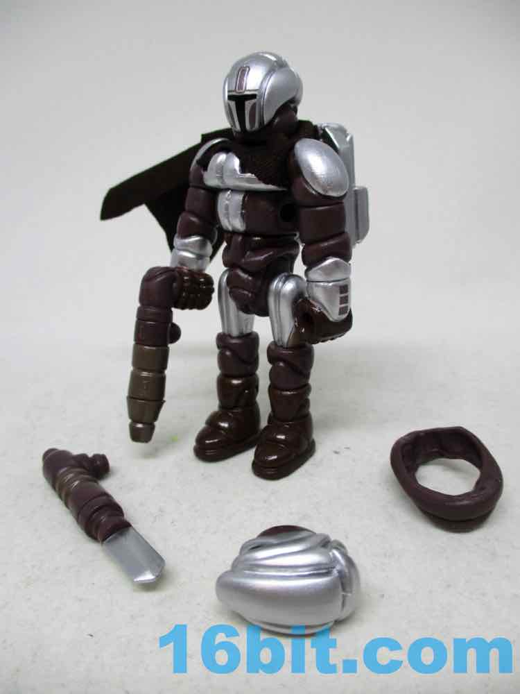 Even Hasbro didn't bother to do a cloth cape for any of its releases of The Mandalorian in the first few years, so it's nice to see Onell Design made use of its ample cloth capabilities. The basic 3-inch Glyan figure is the same as always, but the brown cape fits nicely on the figure's back to give it a different silhouette. If that's not enough, you can shove it aside to the right a little bit by plugging in a silvery backpack, just like his inspiration. If that ToyFinity-inspired piece isn't enough, there are more pieces of weapons from that line to outfit his arsenal to your liking. There's even a second head, to further customize the figure. Depending on how much you squint, it's not hard to see this as a tribute to another of the inspirations for Glyos, and that's Takara's and Mego's Micronauts toys.