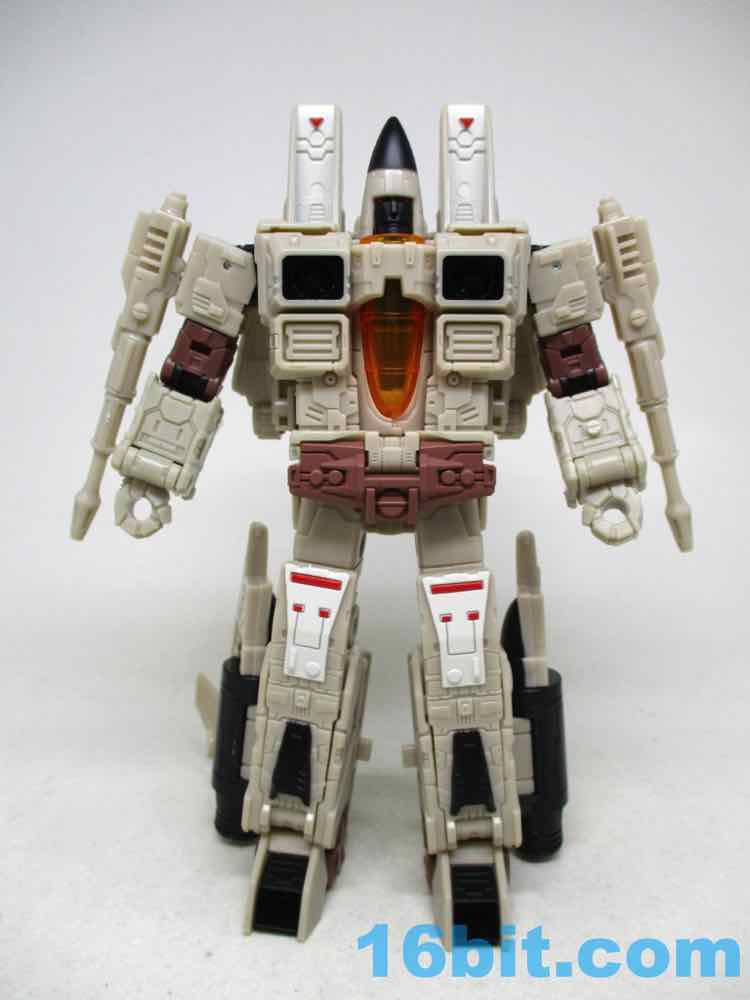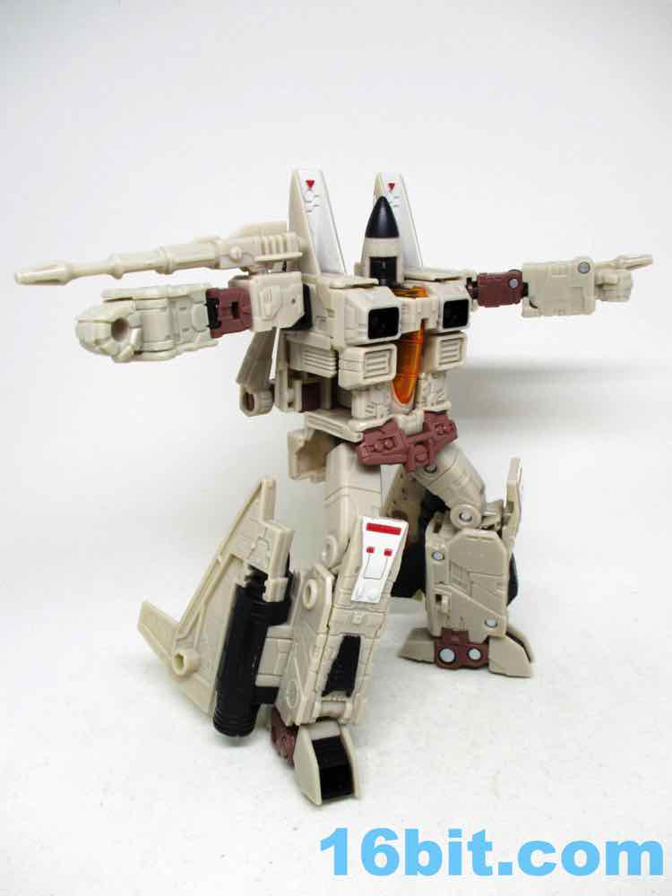Articulation is consistent with other coneheads and repaints of Starscream - of which there are many, but if you ask me, not enough. Sandstorm has rocker ankles as part of his total of 23 points of articulation. I may be stretching a bit - the wrists can pivot forward for transformation reasons, but it's something. The cannons plug right in the shoulders, and he's a good addition to your shelf of fake post-G2 guys. You have one right? I know I do.