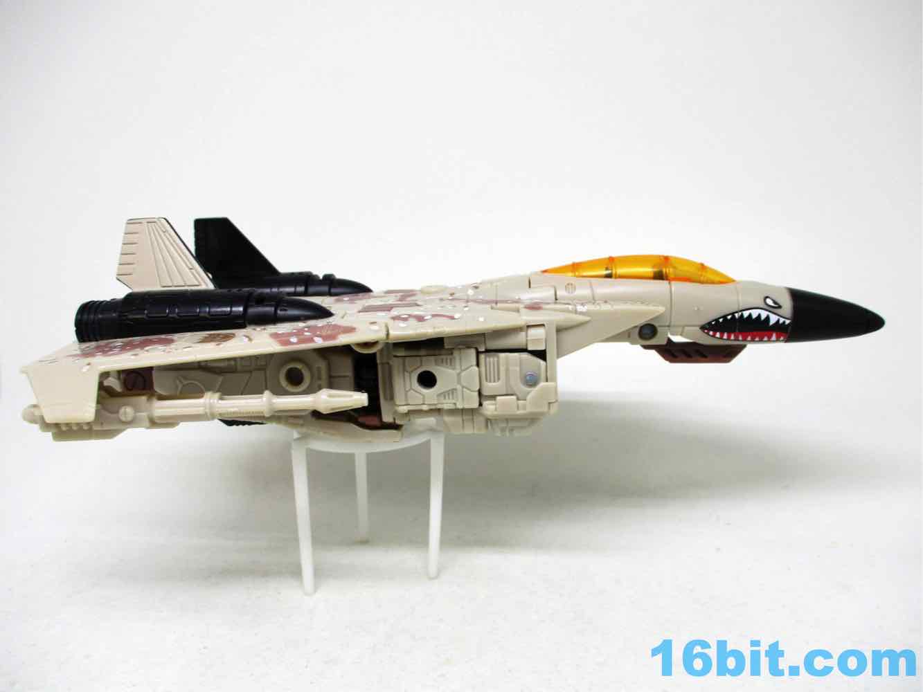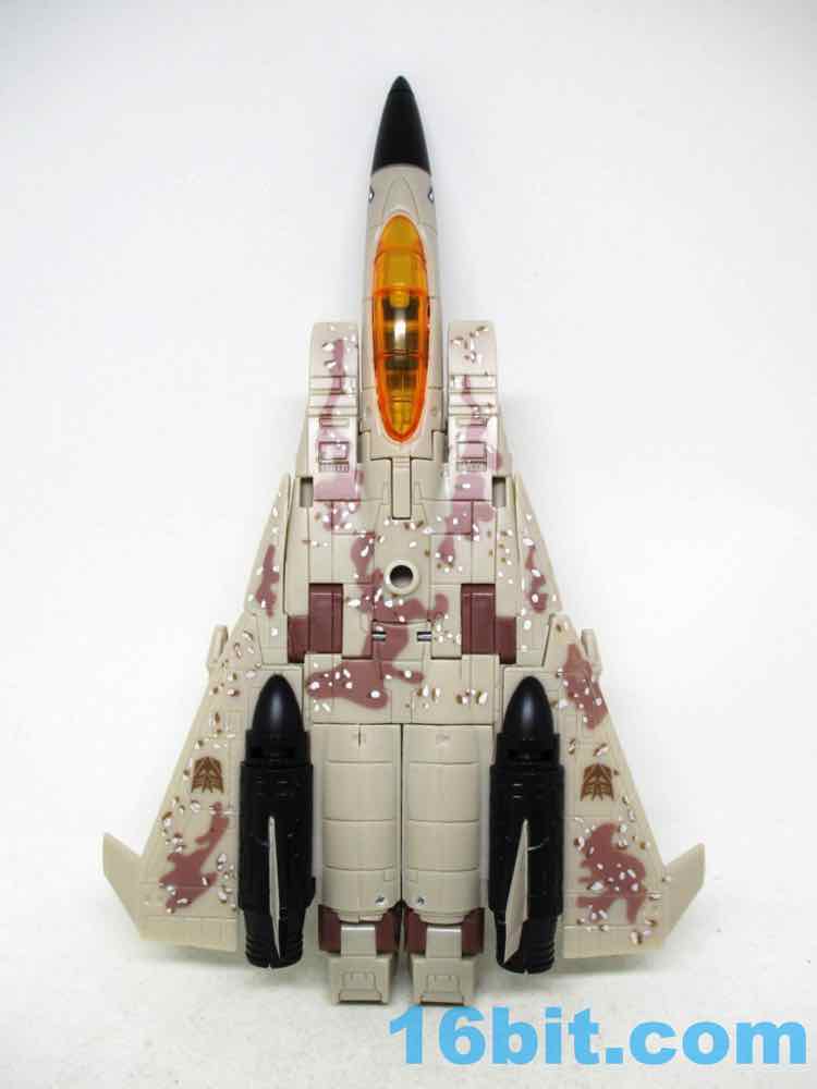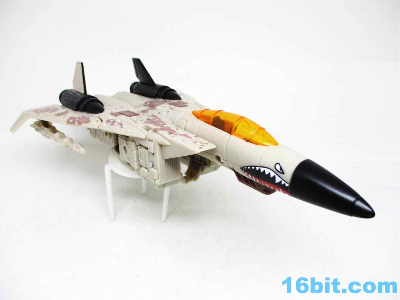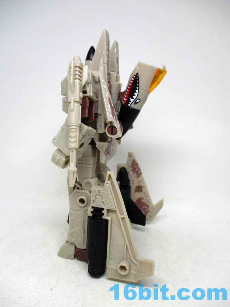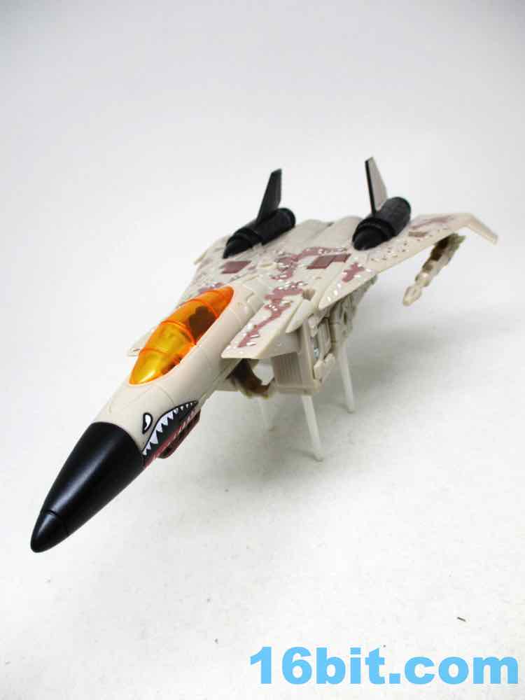 A sand-themed redeco of Earthrise Ramjet [FOTD #2,234], this toy takes its design cues from an unproduced mock-up but was redesigned to be a little less garish. The original toy had some more purple, a big "DC" on the wings, red chevrons, and none of that may be found here. The deco seems designed to trade off of Operation Desert Storm, when desert-themed combat was on the news and for some reason is now in the air. Thanks to your likely having zero preconceptions of how it should look - and certainly no toys of it - it's marvelous. You can't do a new character incorrectly, so Hasbro won big here.
