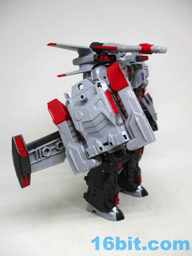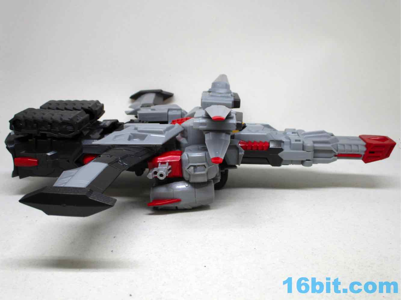 Super Megatron and Ultra Megatron aren't wildly different - the toy's differences are simple. The head changes a bit, the weapon configuration changes, and the wings mode. The robot mode has some good answers to previous complaints - panels cover some of the empty space, for example - but the articulation isn't exactly amazing. Some of the tabs are stubborn and won't lock or move correctly, but it doesn't get in the way of standing him up on a shelf or posing him. Getting the heads swirled around was tricky, and flipping up the helmet was kind of a pain - but doable.