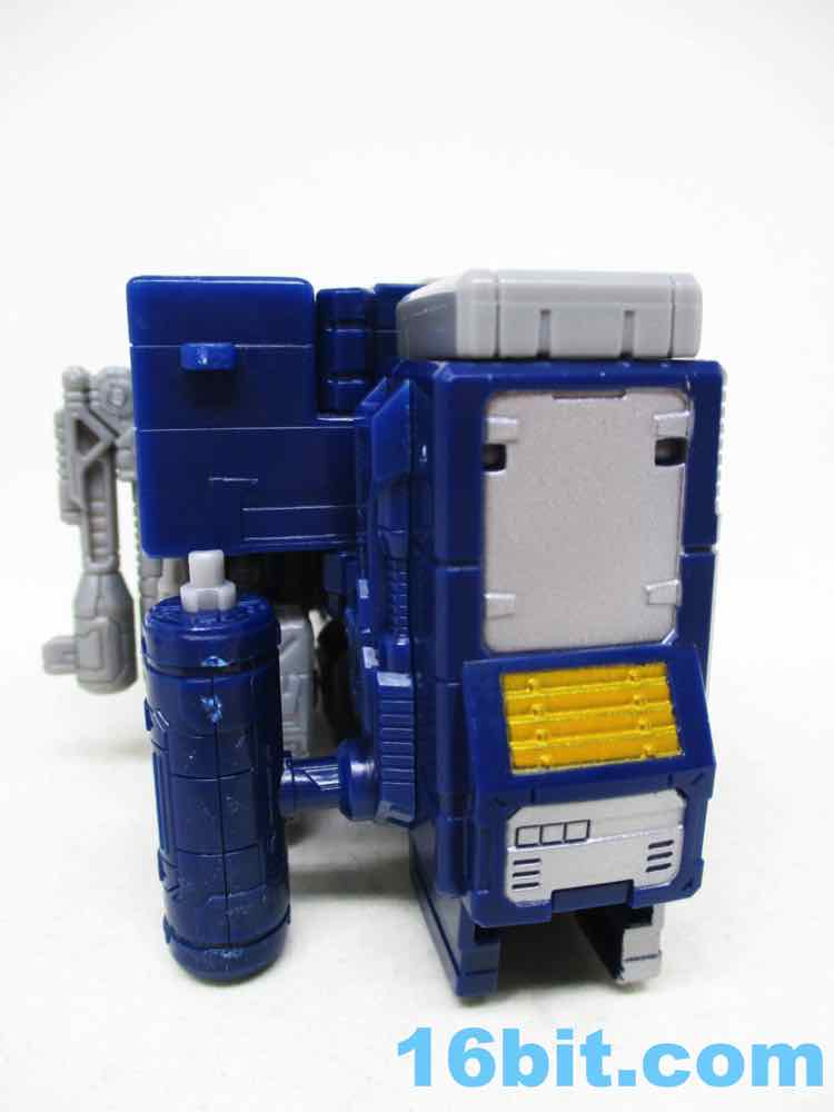 The reason this will excite most fans is the microcassette recorder mode, which Hasbro rarely brings back. We've had boom boxes, spy satellites, space ships, Cybertron cars, but the 1984-style tape player is a rarity. Fans sussed out that the 2019 space ship Siege toy could contort to a convincing tape deck, so this remold isn't exactly a huge surprise. It's not as good as the original, but it's the best non-masterpiece interpretation to date. It's not too big, and the arms hang off the back, but from the front it looks fine. Until further notice, this is the best Classics/Generations Soundwave alt mode you're likely to see. Hasbro has a tough act to follow - the original toy could pop open to store batteries and everything fit together with minimal visible kibble. This one... there's a lot to hide.