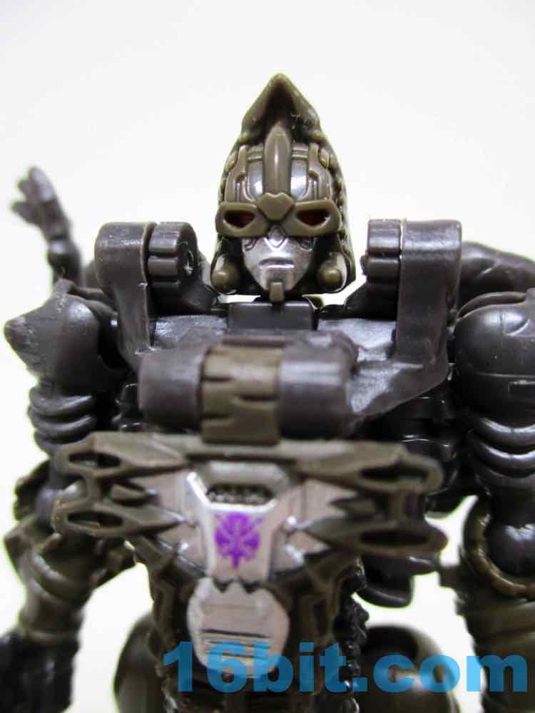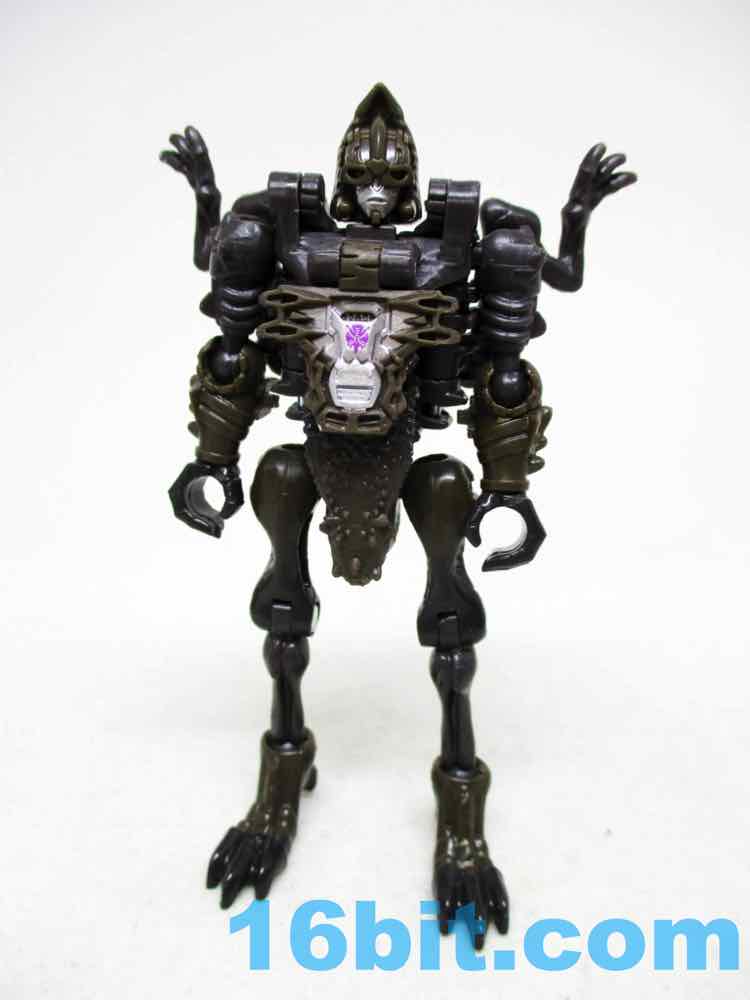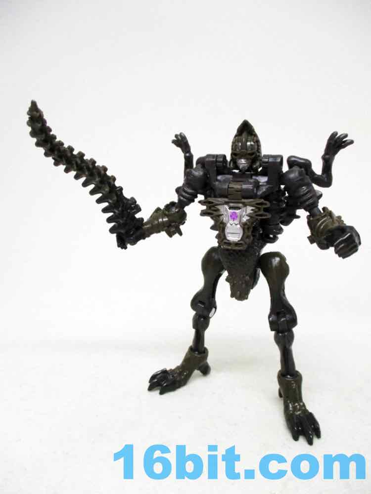 The figure is largely unpainted, making it seem a little lacking for ten bucks. She has a nice painted silver mouth with red eyes, plus a silver chest with a teeny tiny Predacon logo. The rest is largely unpainted, which is what I expect from cheapo figures at the drug store. The 5mm fists have zero problems holding the tail whip weapon, which basically makes this a very expensive cheap robot toy. The quality is there, but long-haul fans might find it about $2 too expensive - especially when compared to similarly complex (but often bigger) Authentics toys.