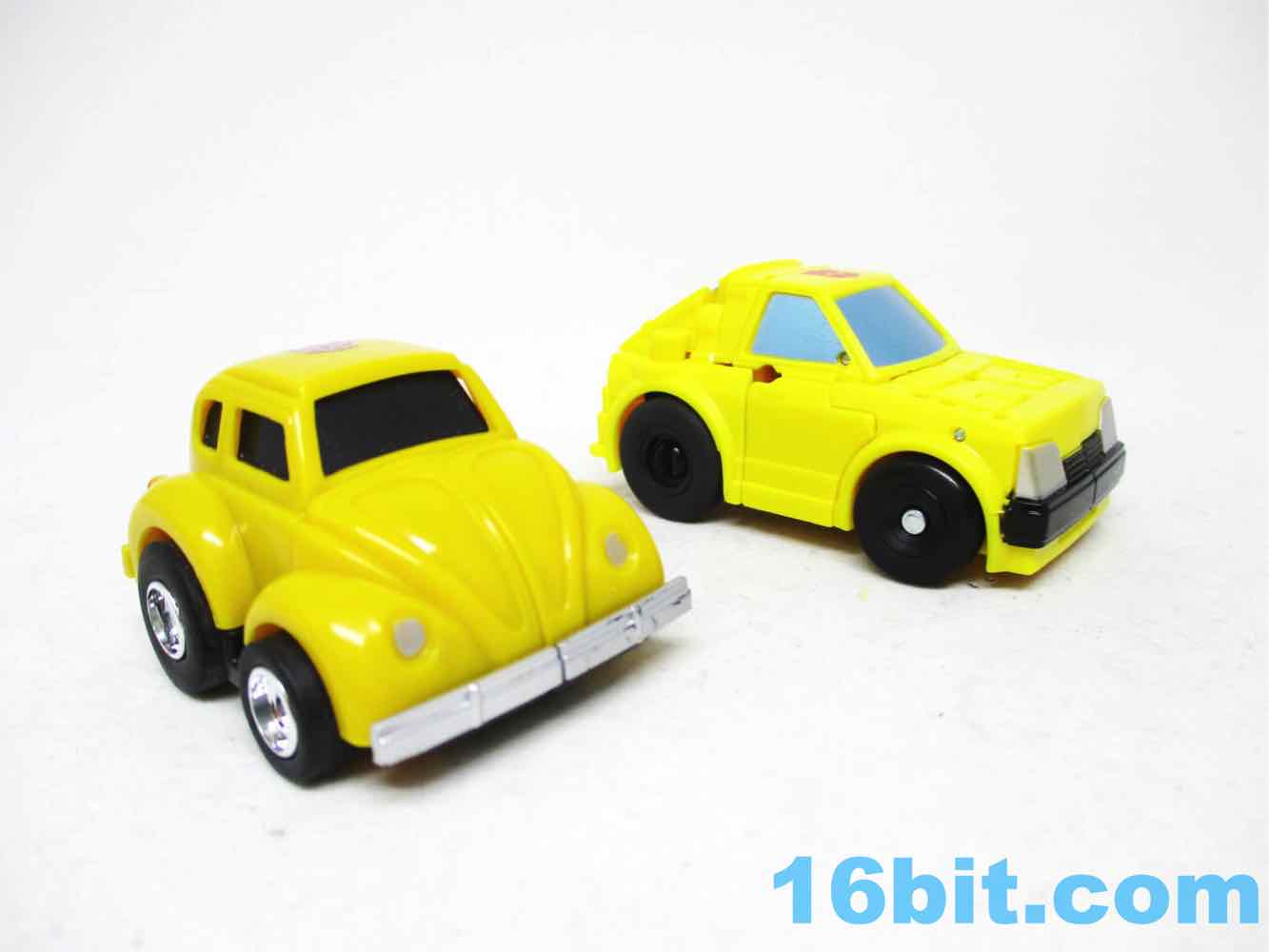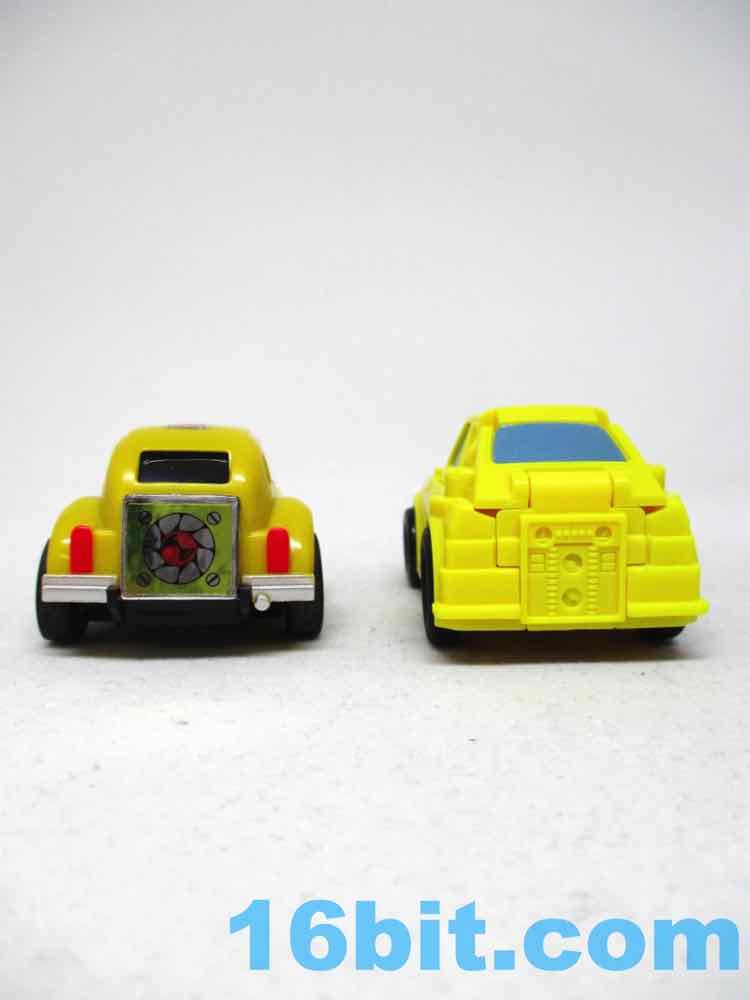 The car looks a lot like Bumper, and not much like Bumblebee - I assume there were questions of the VW license, so they just made something close but not perfectly accurate. It's a fine little car, but is merely a fine little car with no action features. Considering that this is $15 and Walmart's VW toy is bigger and $20, I'd steer you toward that - even though this one is not without its charms, given the head design and the more retro yellow coloring.